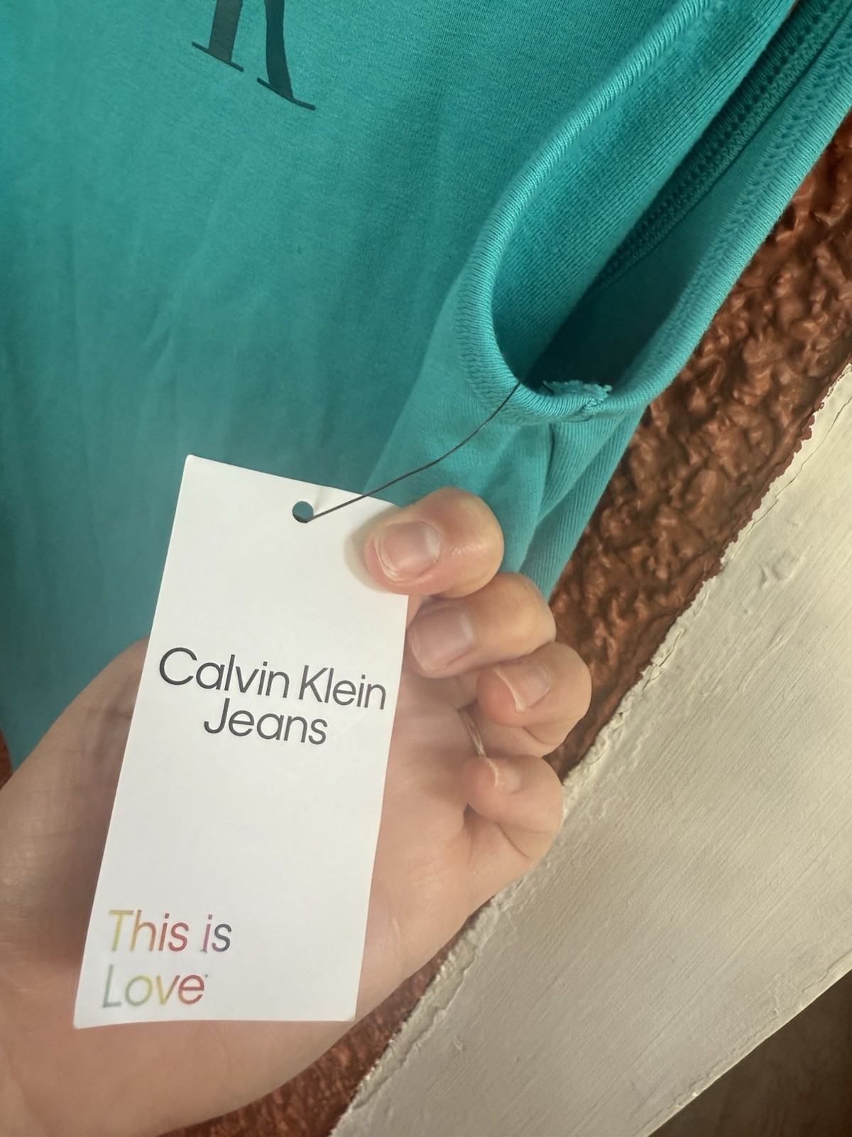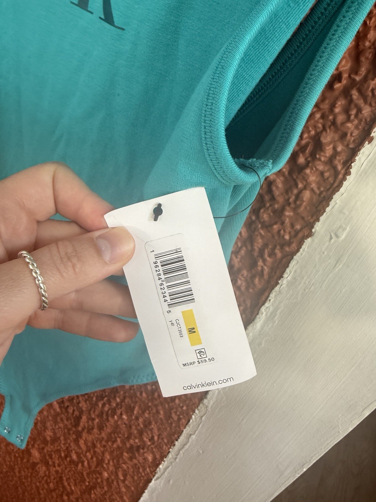 как выглядит Calvin Klein Jeans Monogram Logo Scoop Back Thong Tank Top Bodysuit Teal Medium фото