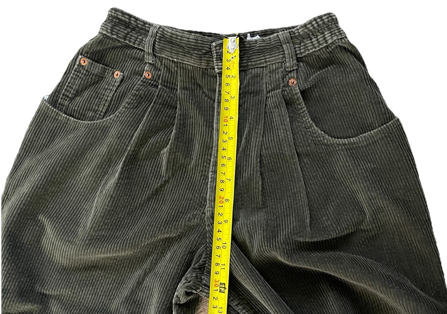 как выглядит Vtg Biscuit Jeans Moss Green Corduroy Women Pants Sz:40 Made In France фото