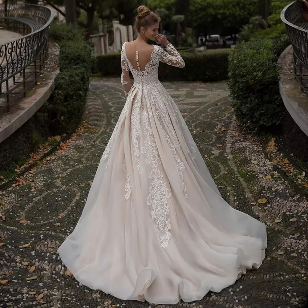как выглядит Exquisite Sweetheart Lace Sleeves Wedding Dress Customized A Line Bridal Gown фото