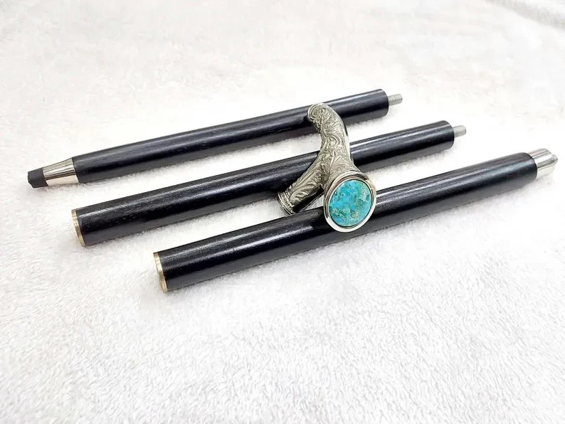 как выглядит Handmade Black Wooden Foldable Walking Stick with Derby Shape Brass Handle Decor фото