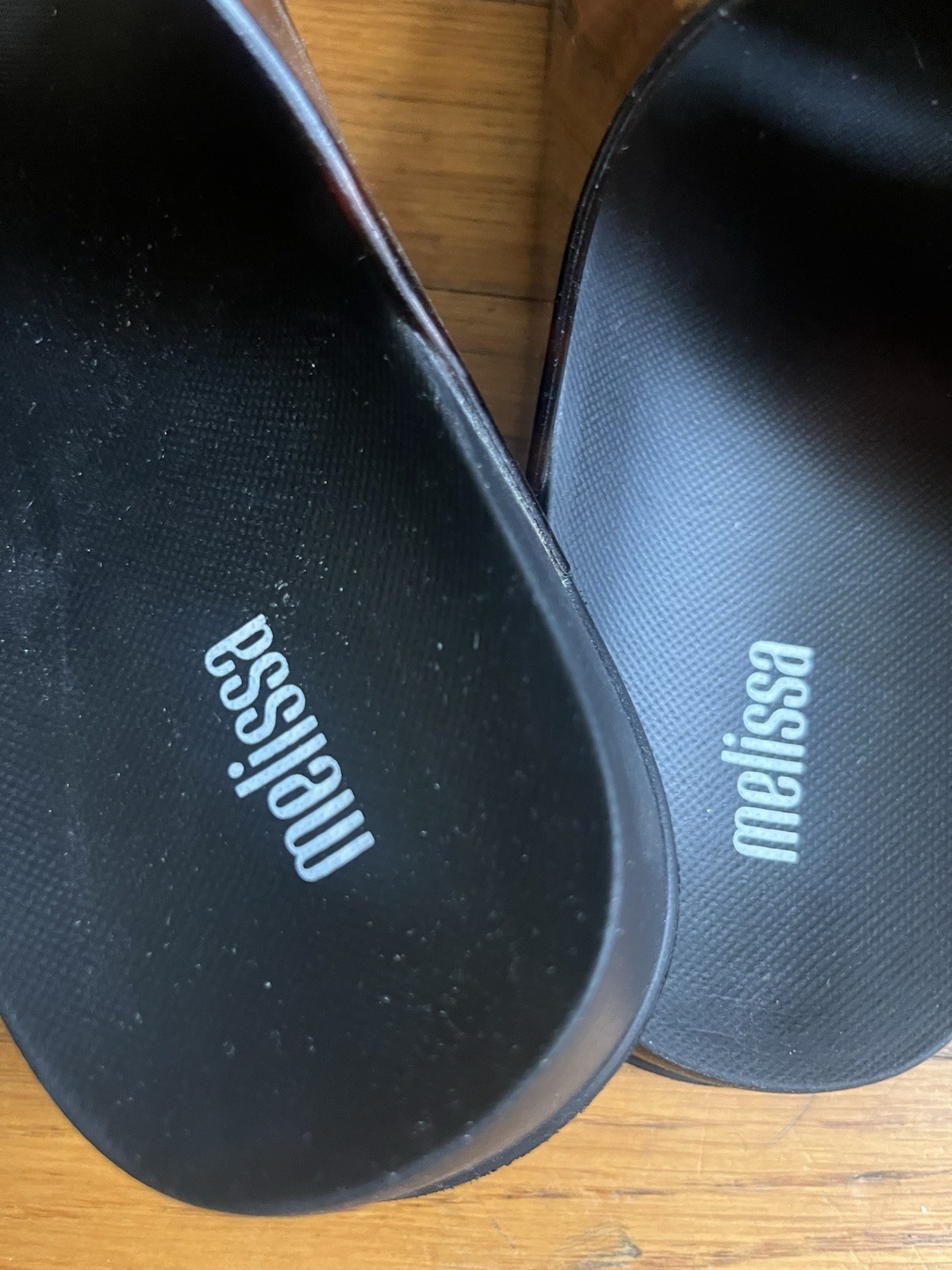 как выглядит Melissa Cozy Black/Clear Tortoise Buckle Sandals Women s Size 6 фото