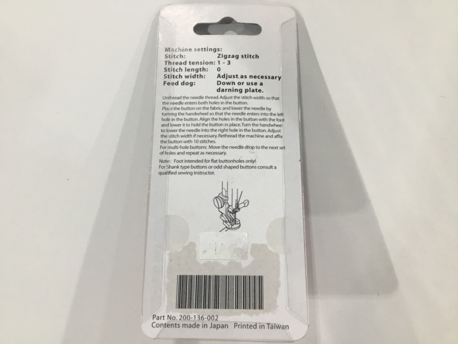 Janome Button Sewing Foot for Horizontal Rotary Hook Models 200136002 - Sealed