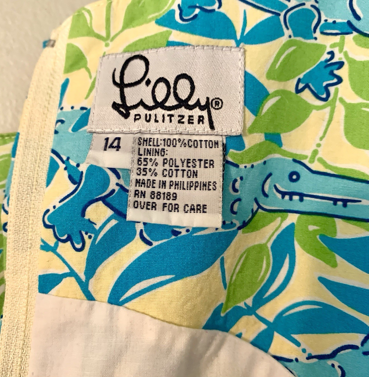 как выглядит Vintage 1990s Lilly Pulitzer ChildrensDress  Mimosa Everglades Alligator Print фото