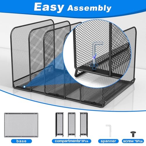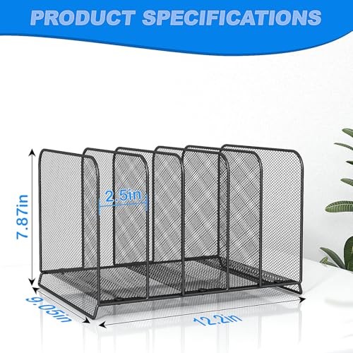 5 Sections Desk File Holder/Rack/Sorter,Mesh File Organizer,File Folder 1 Pack