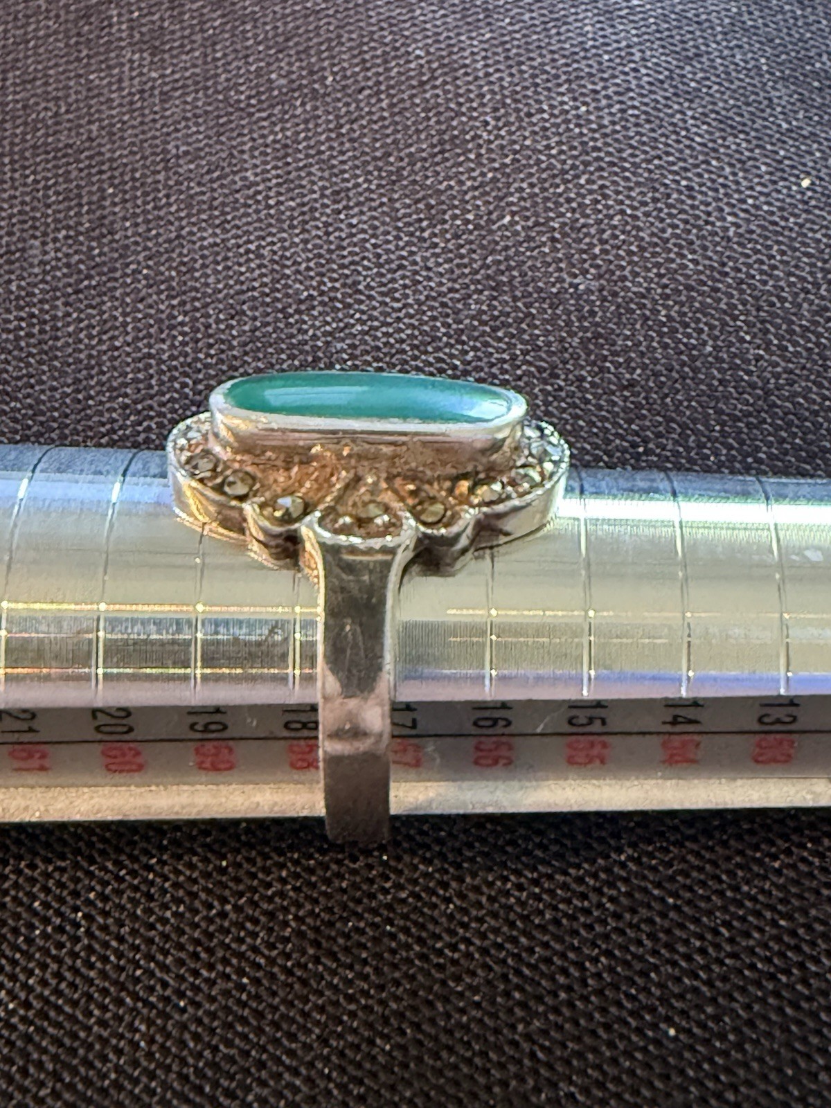 как выглядит Sterling Silver Green Stone Marcasite Ring Vintage Design фото