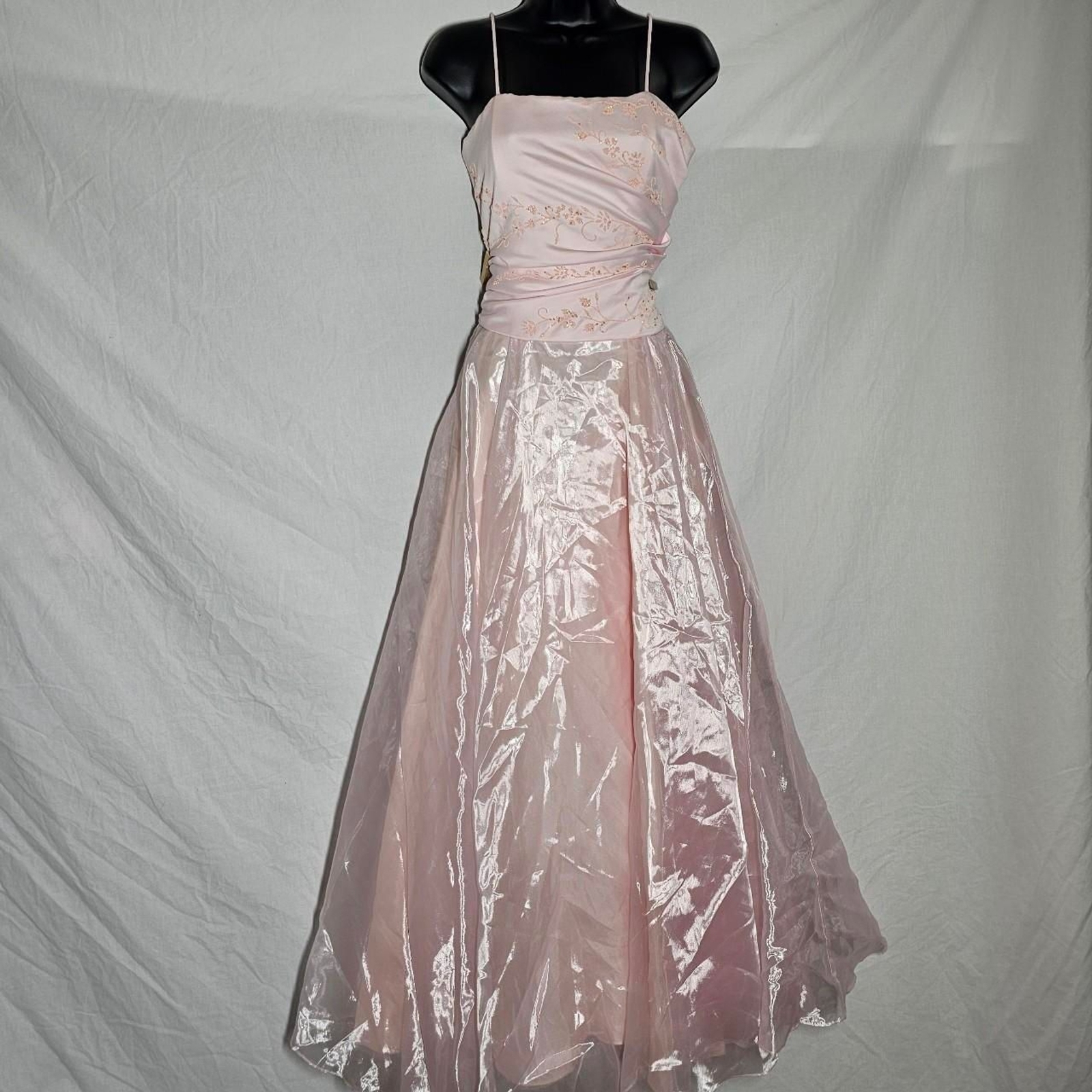 как выглядит Vintage y2k light baby pink coquette a-line prom dress фото