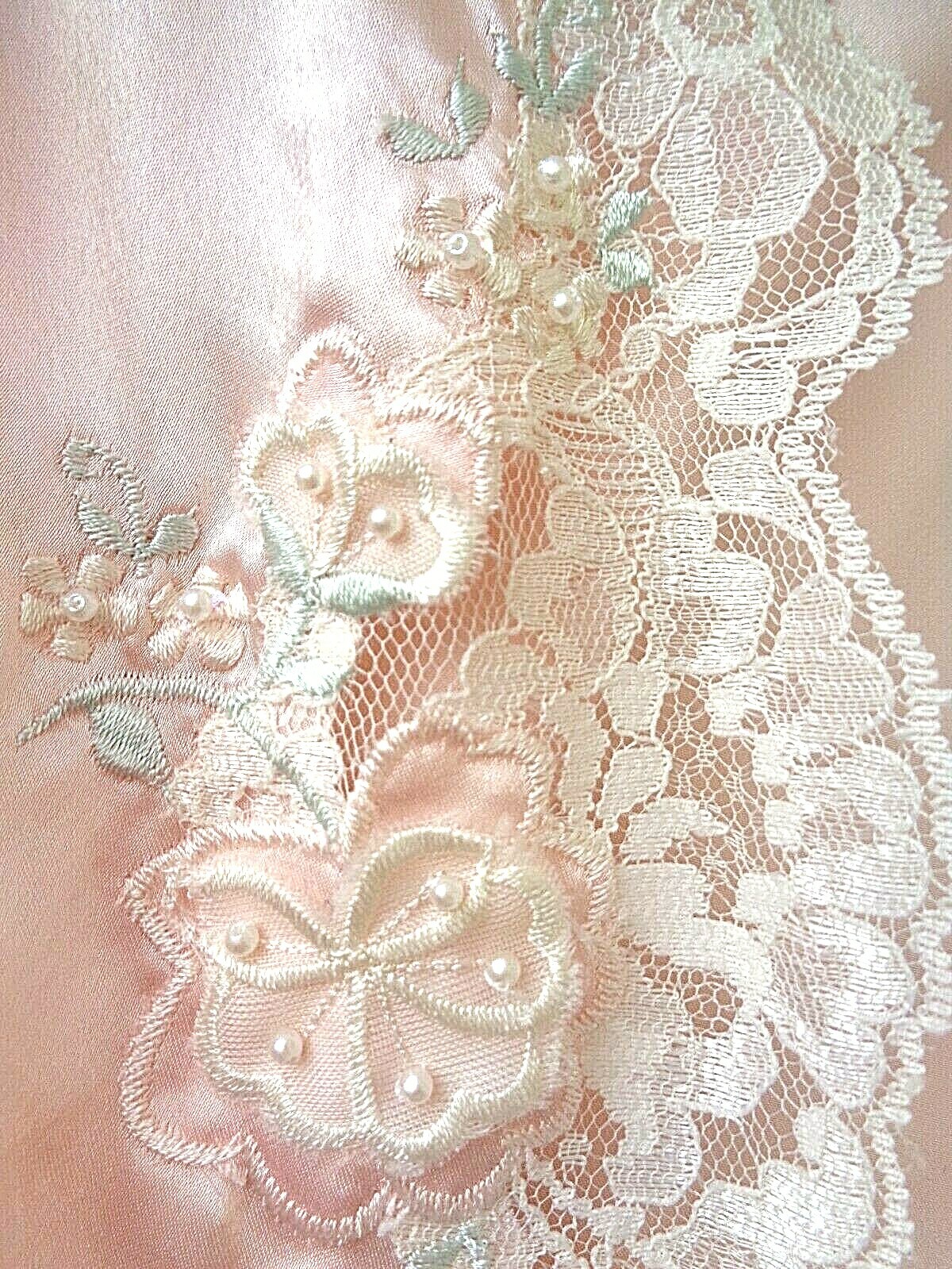 как выглядит Val Mode Lingerie 1980s Pink Long Robe w/Lace Embroidery Design Medium VINTAGE фото