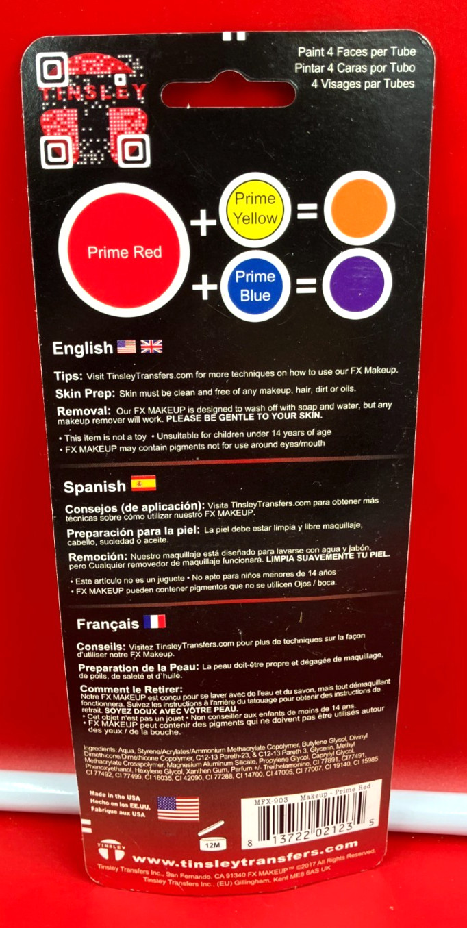 Tinsley Transfers FX Halloween Water Based Cream Face Makeup Red Body Paint