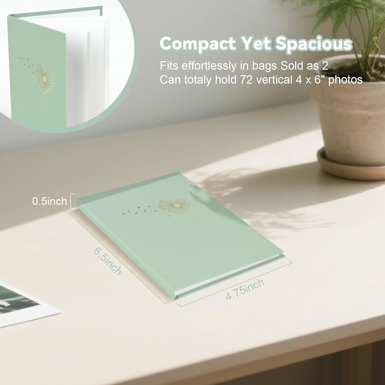 2 Pack 4x6 Small Photo Album Holds 72 Vertical Pics, Wedding Baby Travel Book