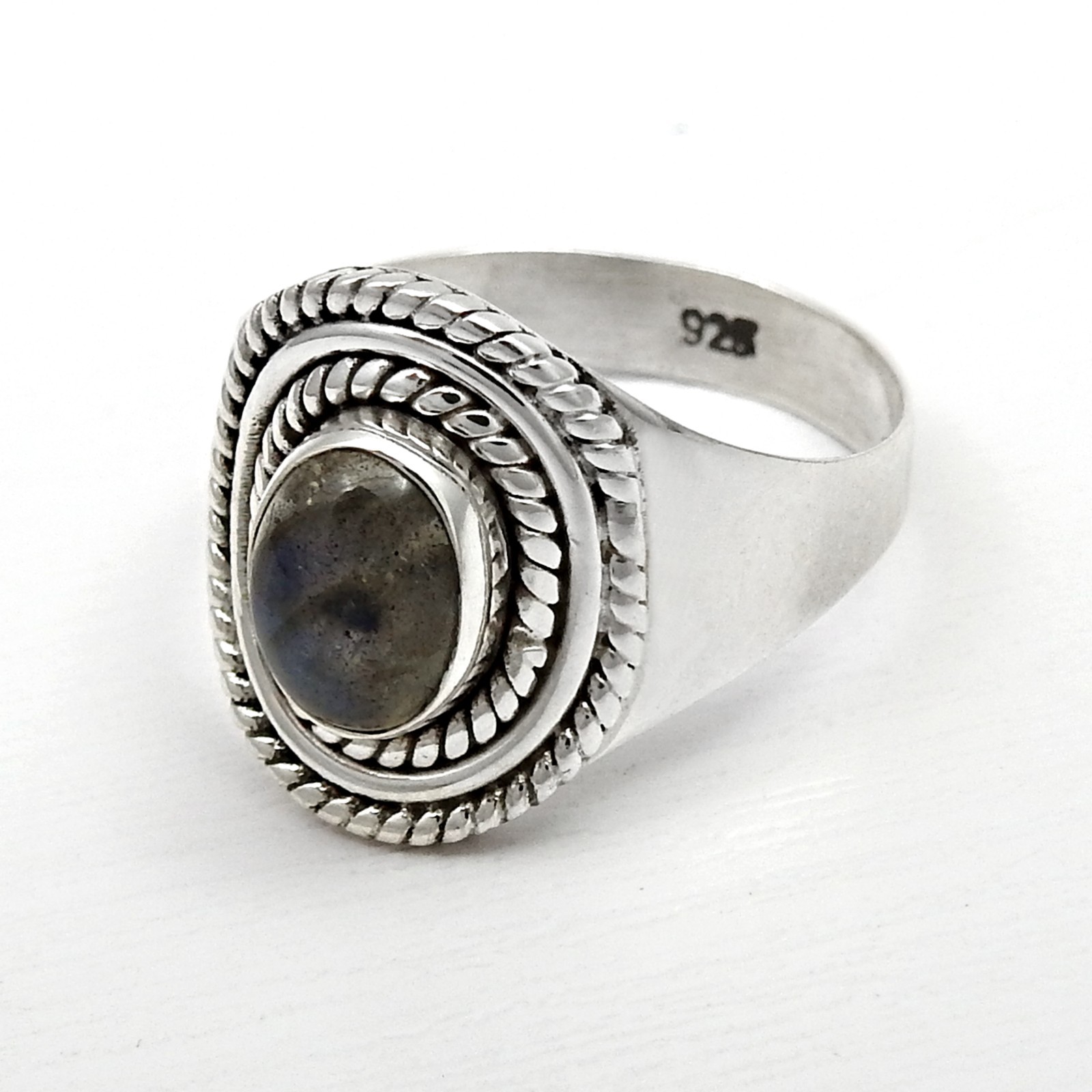 Natural Labradorite Solid Sterling Silver Bezel Cocktail Anniversary Ring Size 7