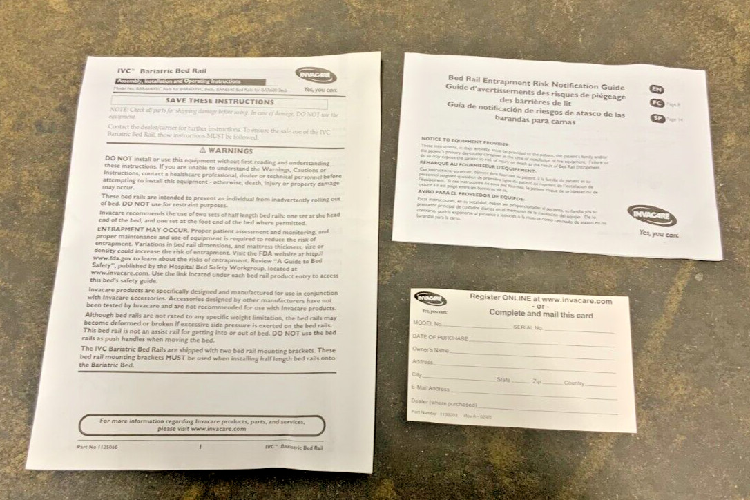 NEW Invacare BAR6640IVC IVC Medical Bariatric Half Bed Side T Rail 1 Pair 29