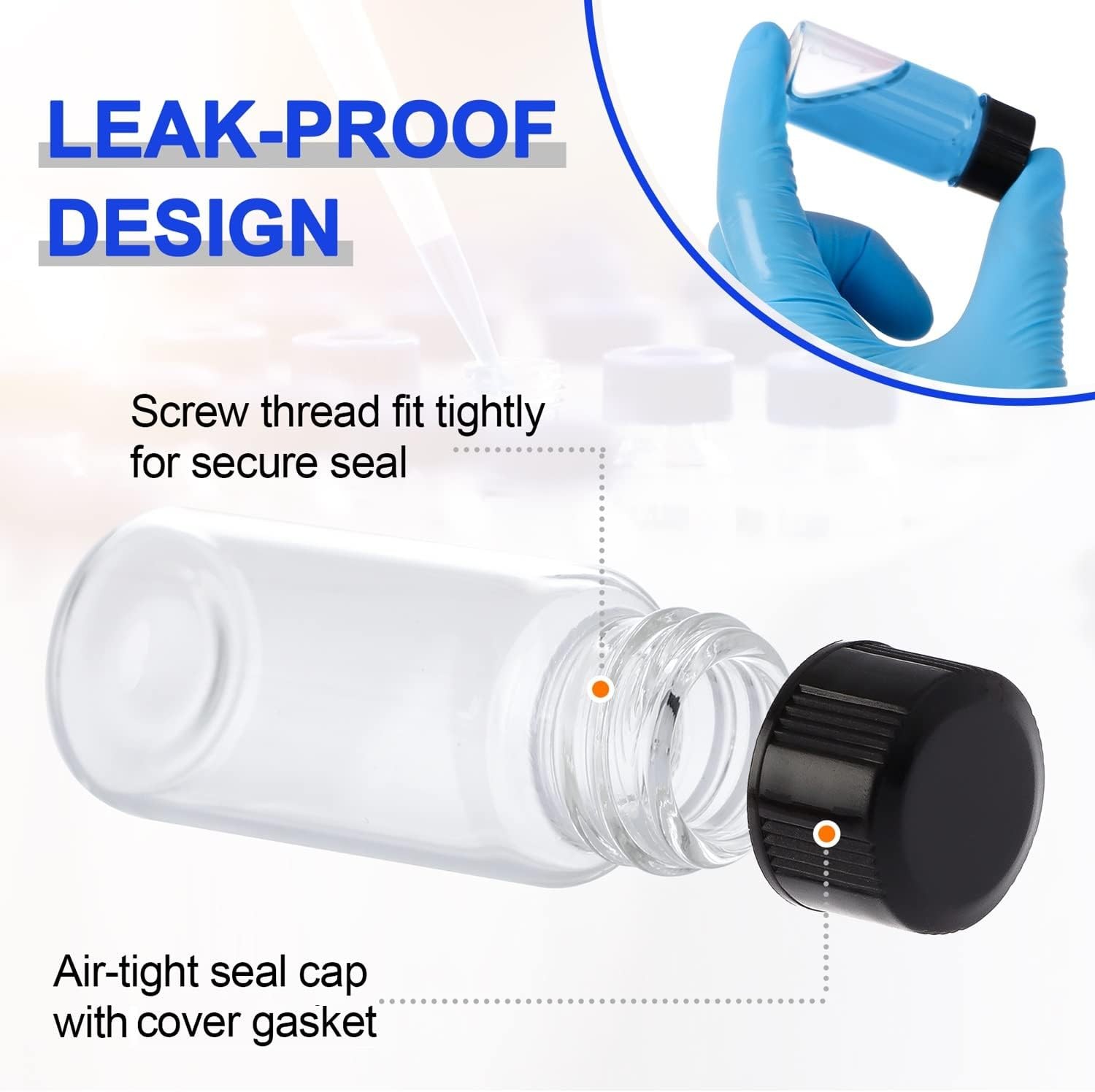 как выглядит 10ml 100pcs Screw Caps Glass Vials Transparent Sample Bottle Liquid Sample Vial фото
