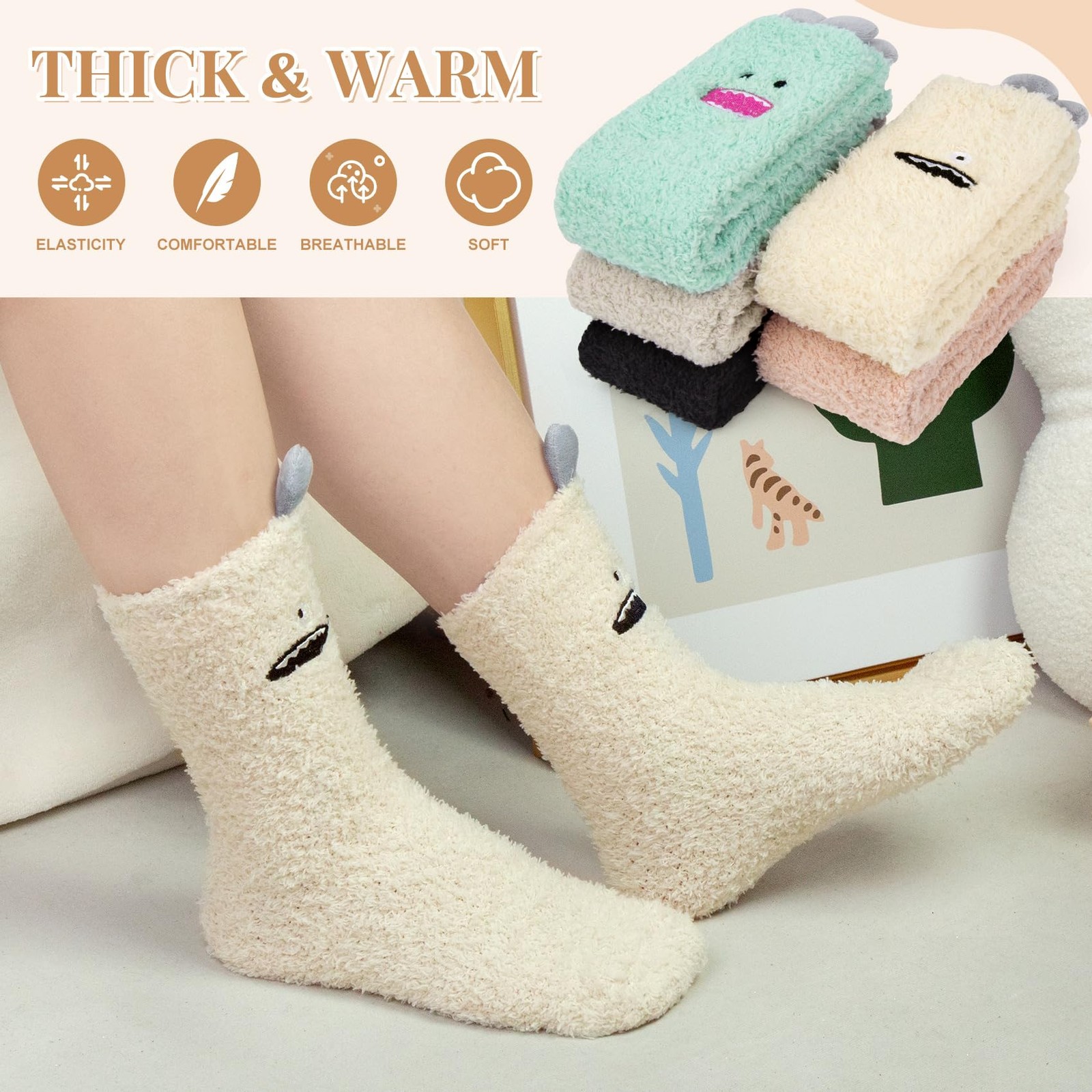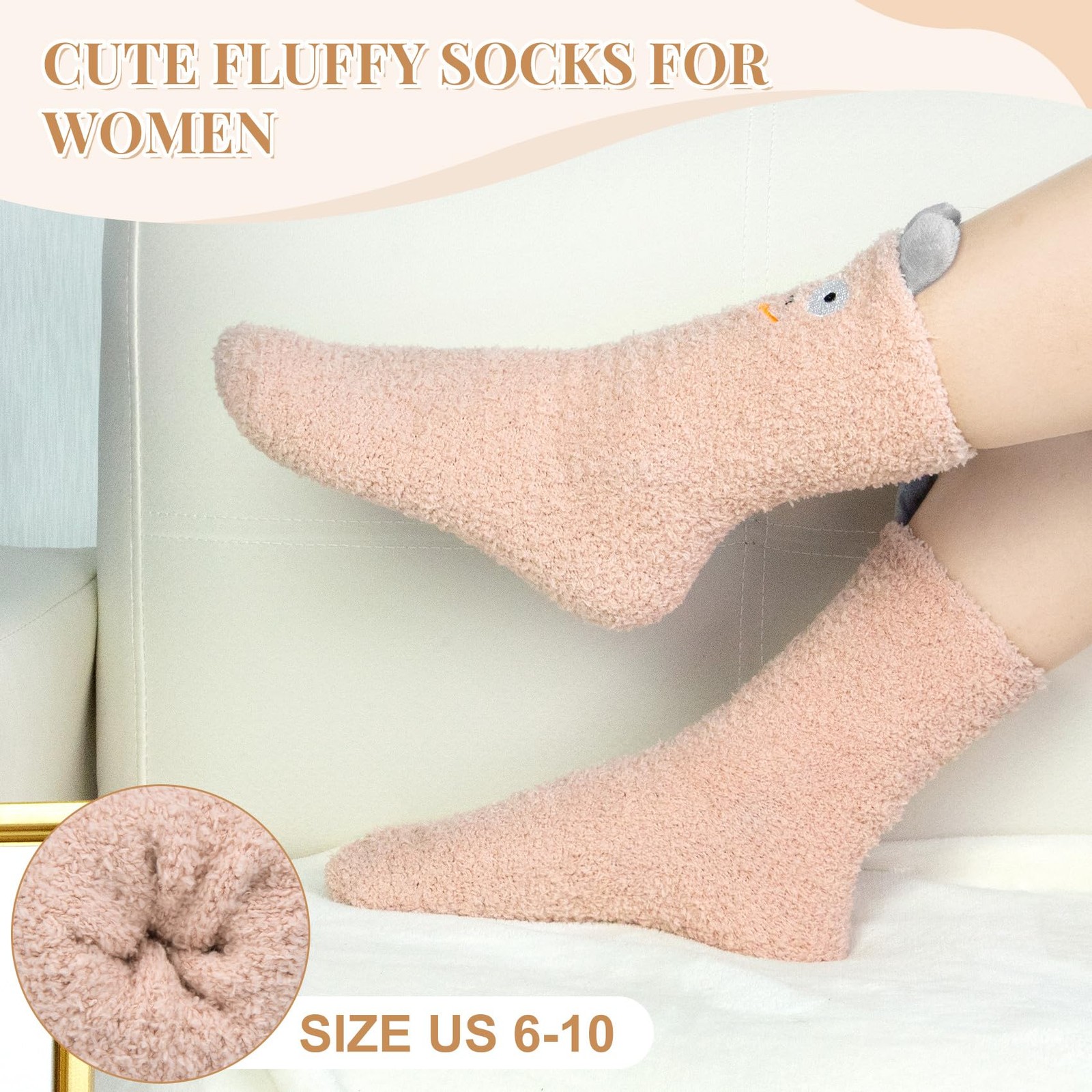 5 Pairs Womens Fluffy Fuzzy Socks Cute Warm Winter Slipper Cozy Socks for Women