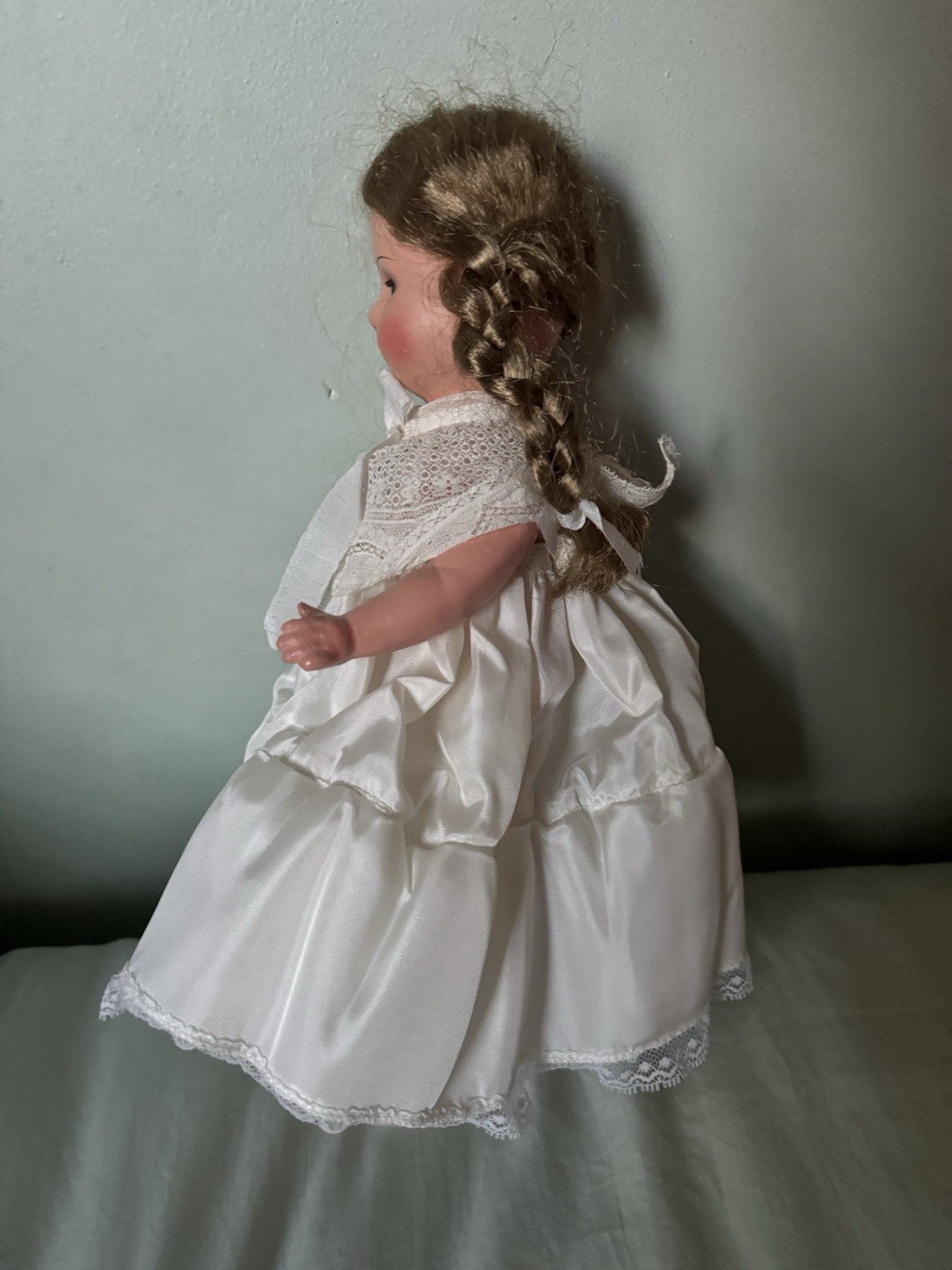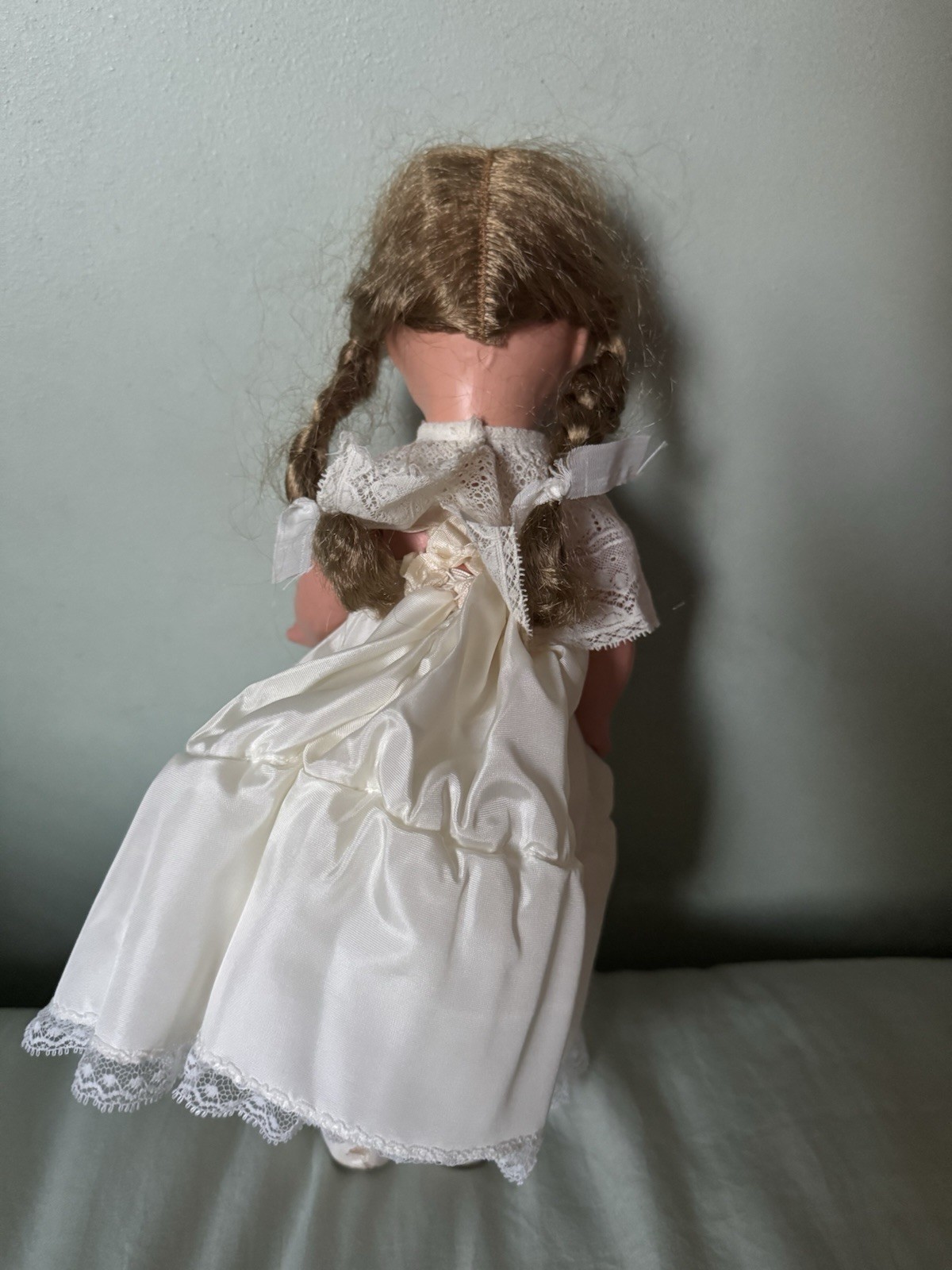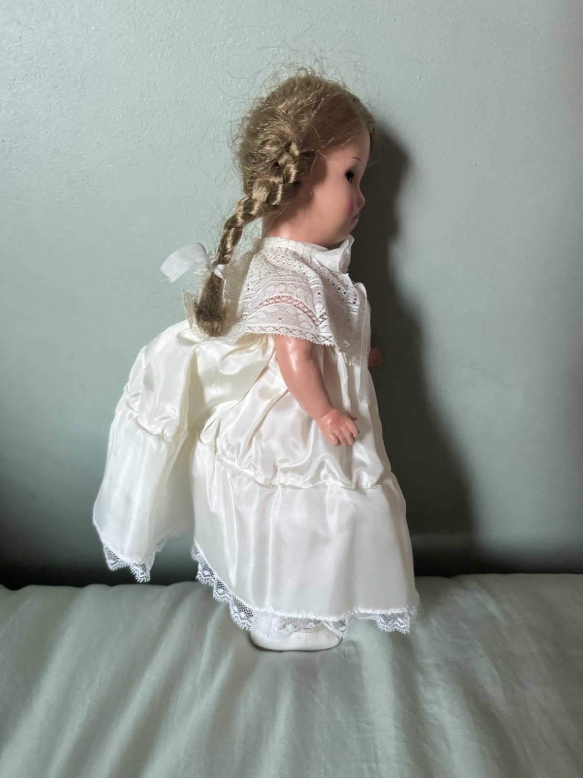 Antique German Celluloid Doll NICE 12 Blonde Braids, Marking IV Good Cond