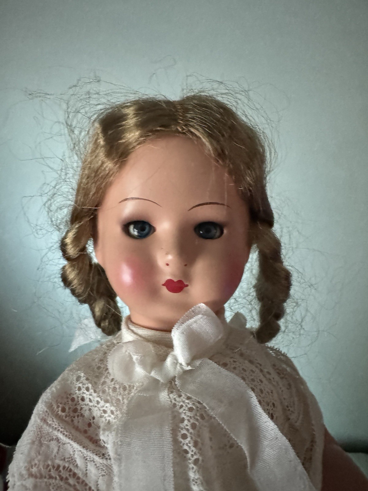 как выглядит Antique German Celluloid Doll NICE 12 Blonde Braids, Marking IV Good Cond фото