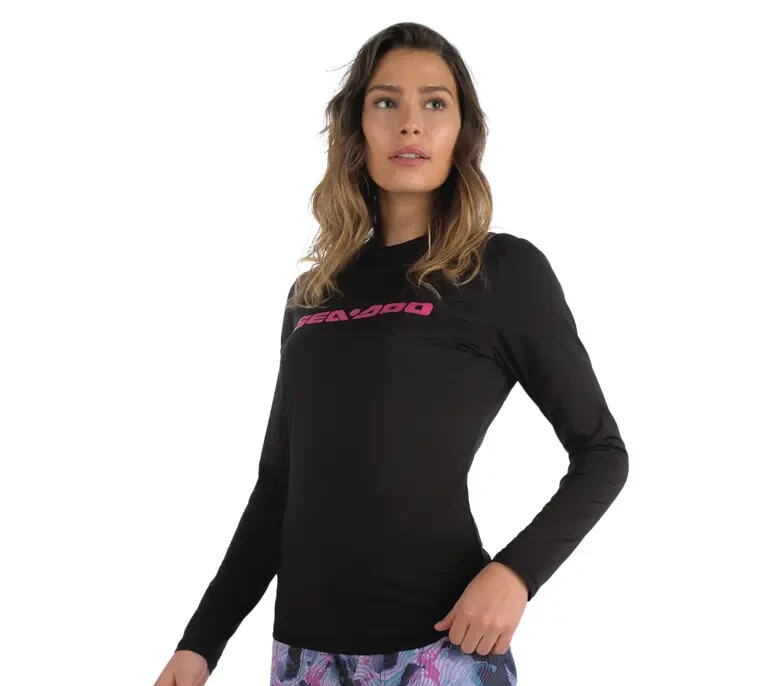 как выглядит NWT BRP Sea-Doo Womens Long Sleeve Rashguard Signature, Blk/Pnk - Size Medium фото