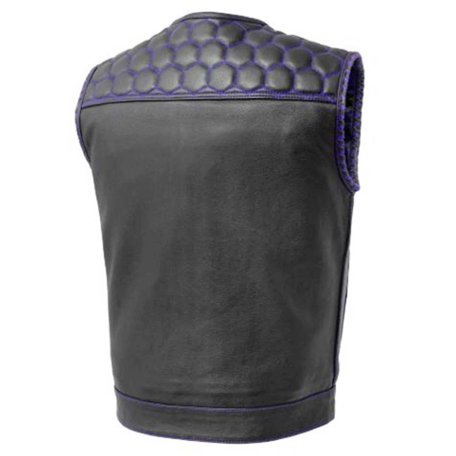 Men s Black Leather Biker Vest with Blue Paisley Lining Concealed Carry Pocket