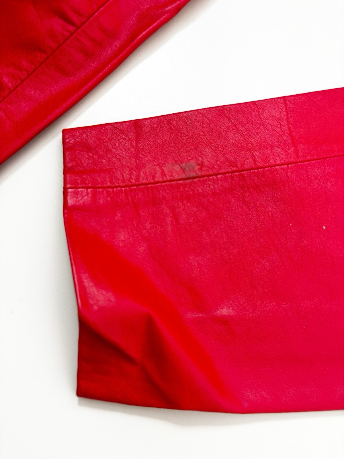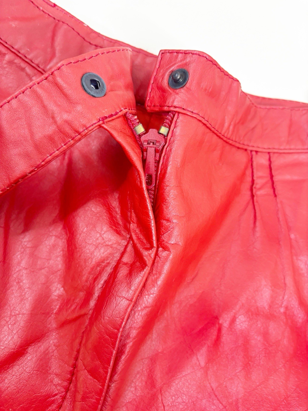 VTG Red Leather Argentina Pants Actual Size 24x27 High Rise Taper Leg EUC