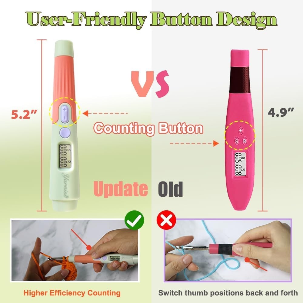 Versatile 18-Piece Light Up Crochet Hook Set with Digital Stitch Row Counter