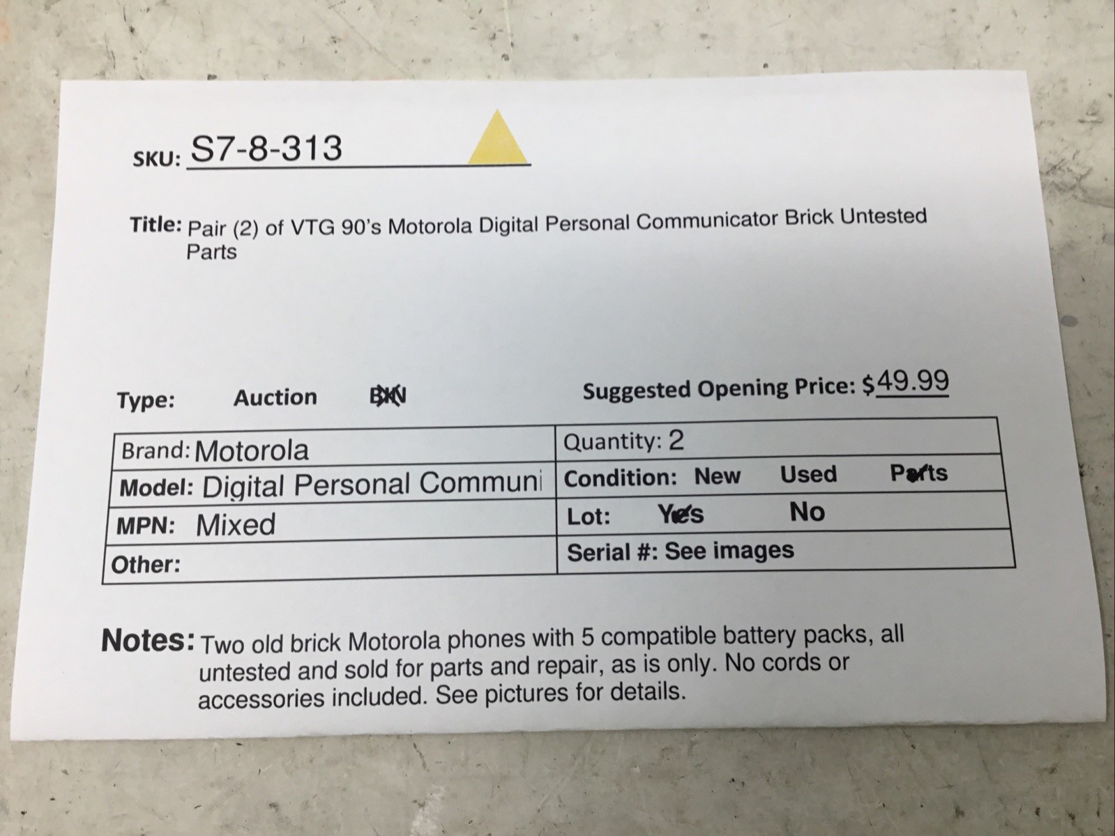 Pair 2 of VTG 90 s Motorola Digital Personal Communicator Brick Untested Parts