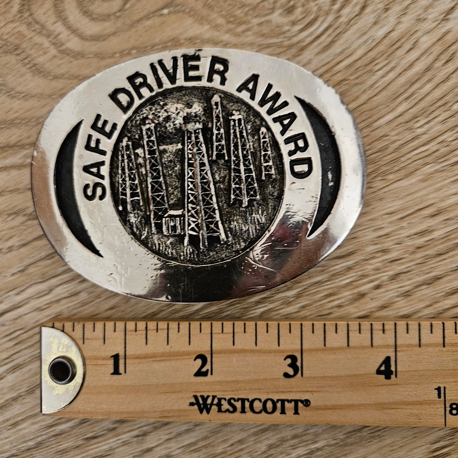 как выглядит Vintage Getty 1983 Safe Driver Award Belt Buckle Oilfield Silver Tone 1610 фото