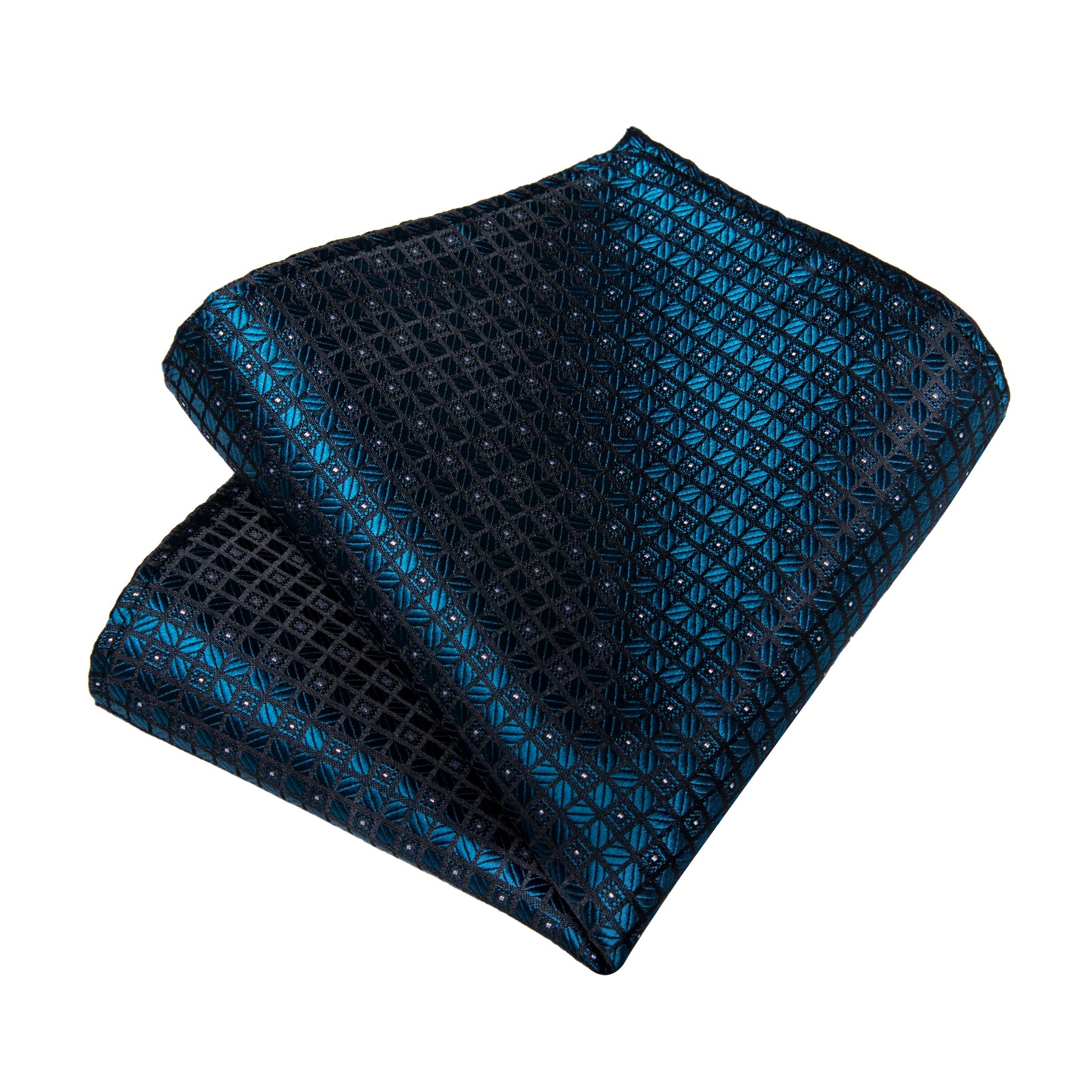 Navy Blue Plaids Necktie Mens Tie Hankie Cufflinks Tie Pin Set Gift Event