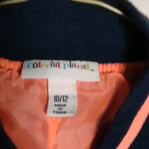 как выглядит Colorful Planet Satin Bomber Jacket Unisex Kids Sz 10/12 Blue Lightweight Spring фото