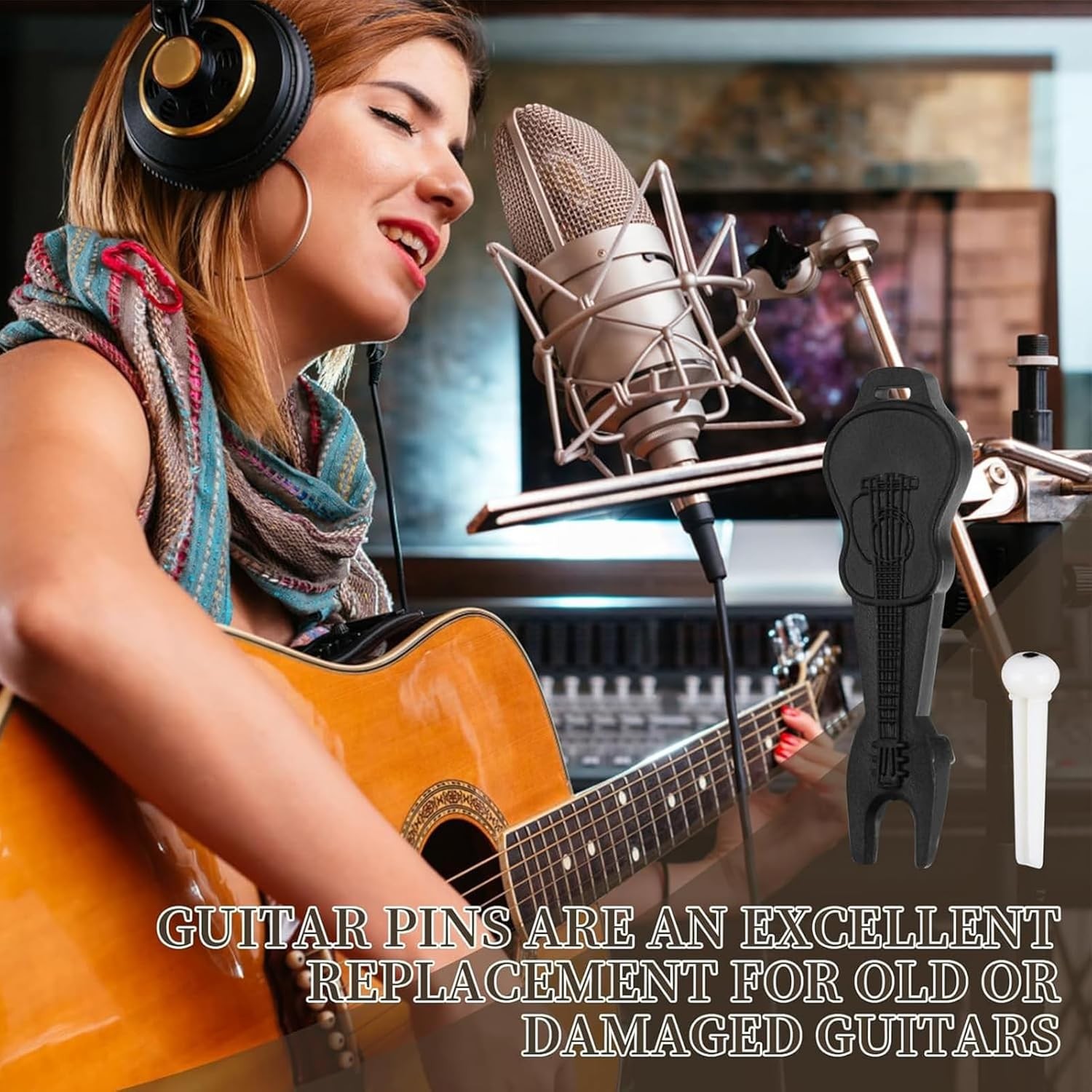 как выглядит 12Pcs Acoustic Guitar Bridge Pins, Guitar String Pins Pegs with Bridge Pin Pulle фото