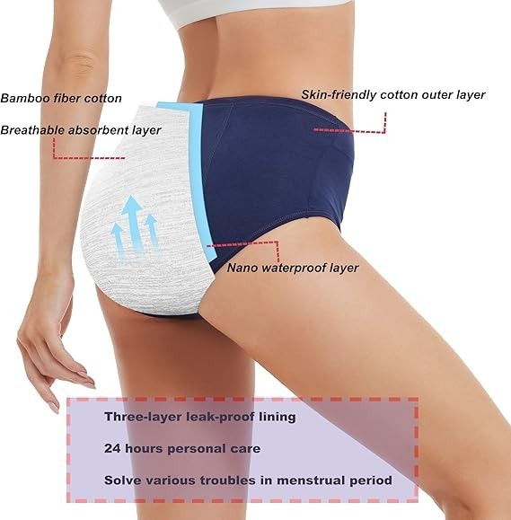 как выглядит 5Pack High Absorbency Incontinence Underwear for Women Washable Leakproof Pantie фото