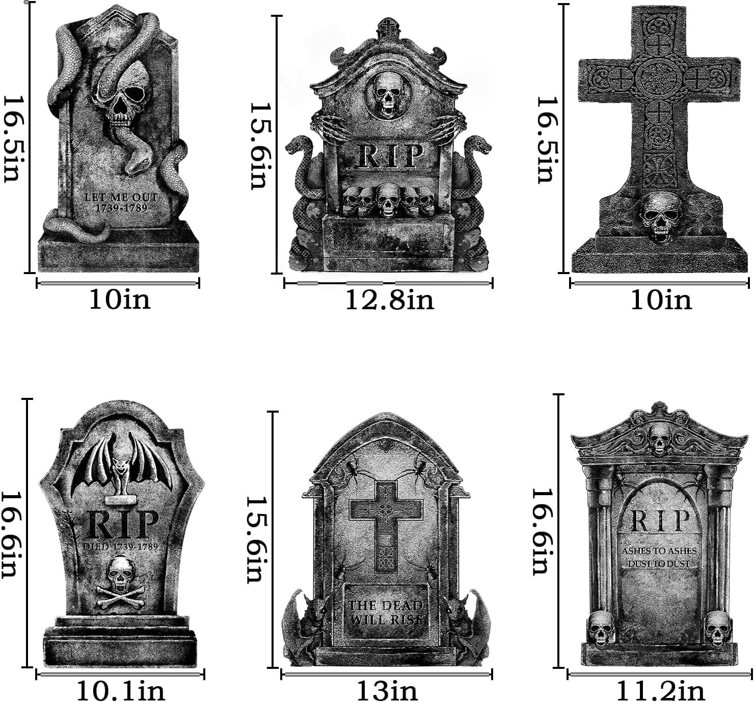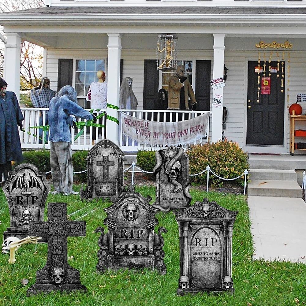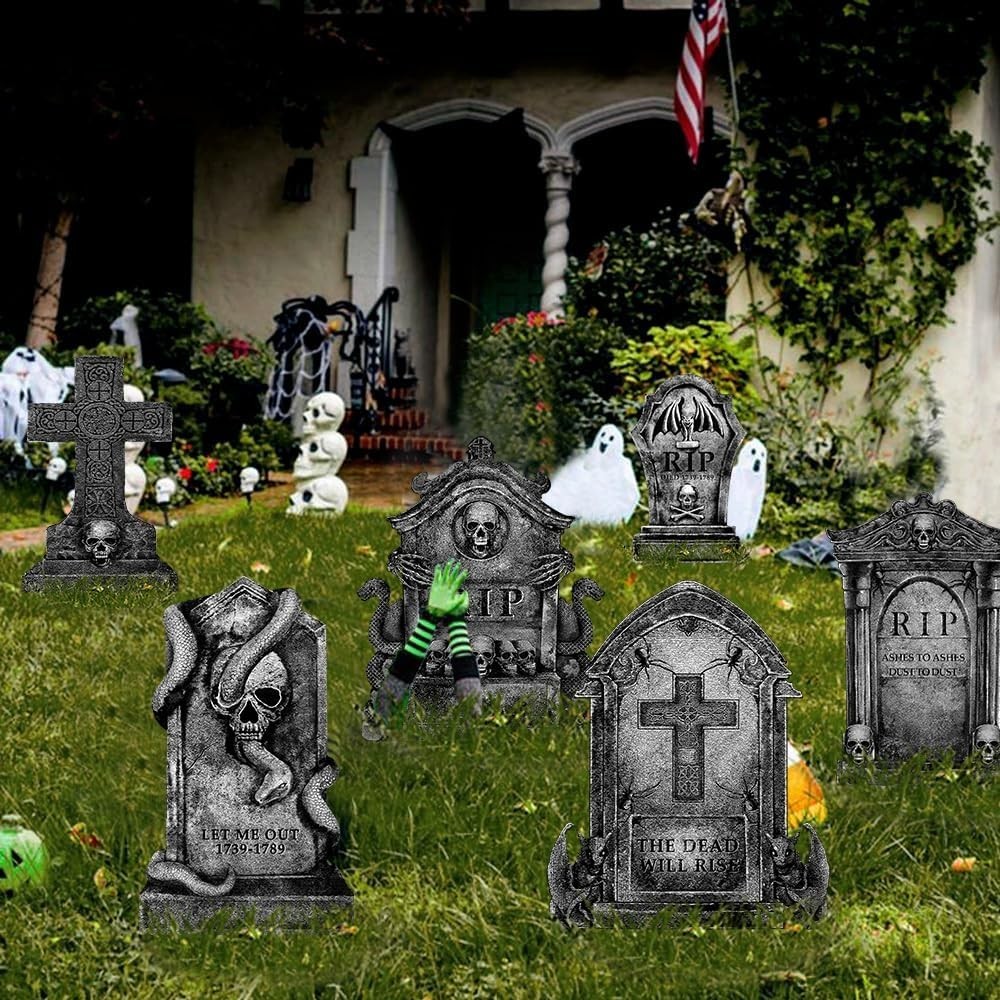 6 Pcs Halloween Graveyard Tombstone Metal Outdoor Decorations Gray