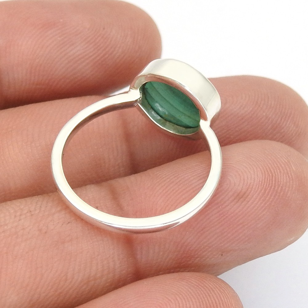 Natural Malachite Sterling Silver Mother Trendy Statement Bezel Ring Size 8.5