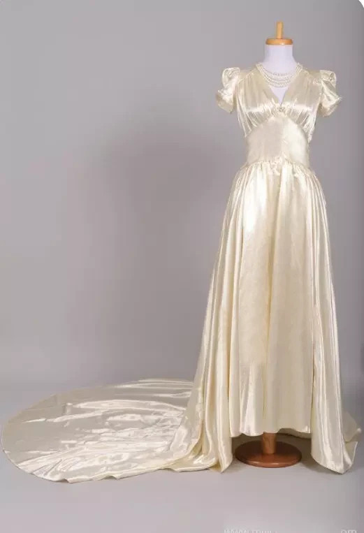 как выглядит Vintage Champagne Wedding Dresses Silk Satin V Neck Short Sleeves Bridal Gowns фото