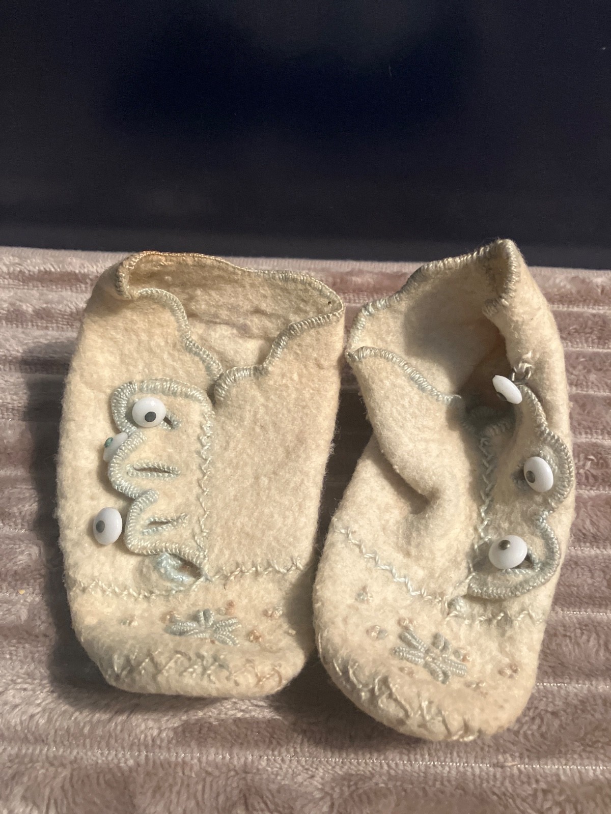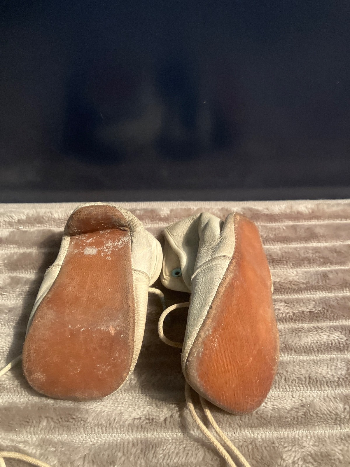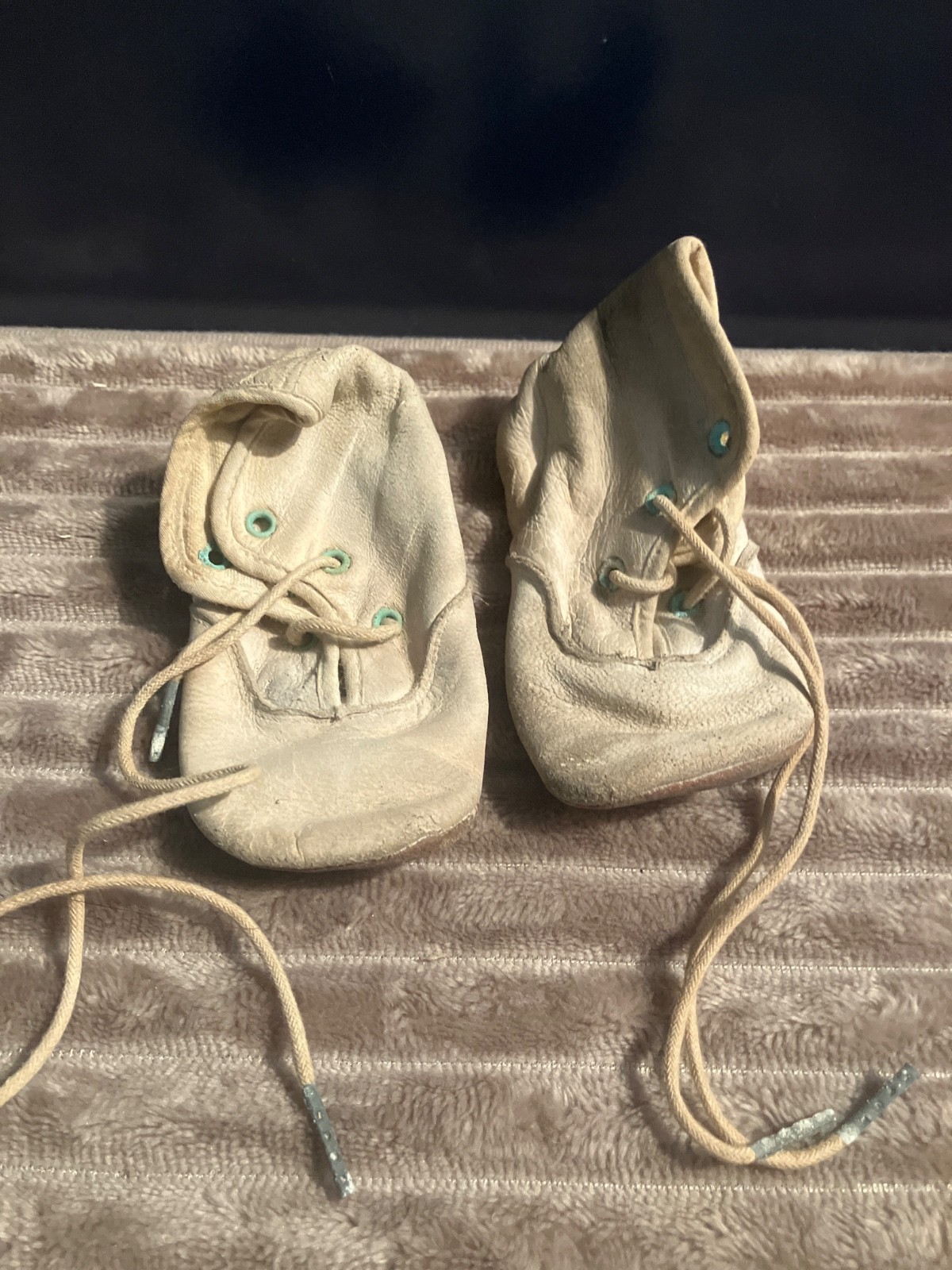 как выглядит 3 PAIR VINTAGE BABY SHOES - LEATHER CLOTH - W/ BOX -- LACE UP BUTTON фото