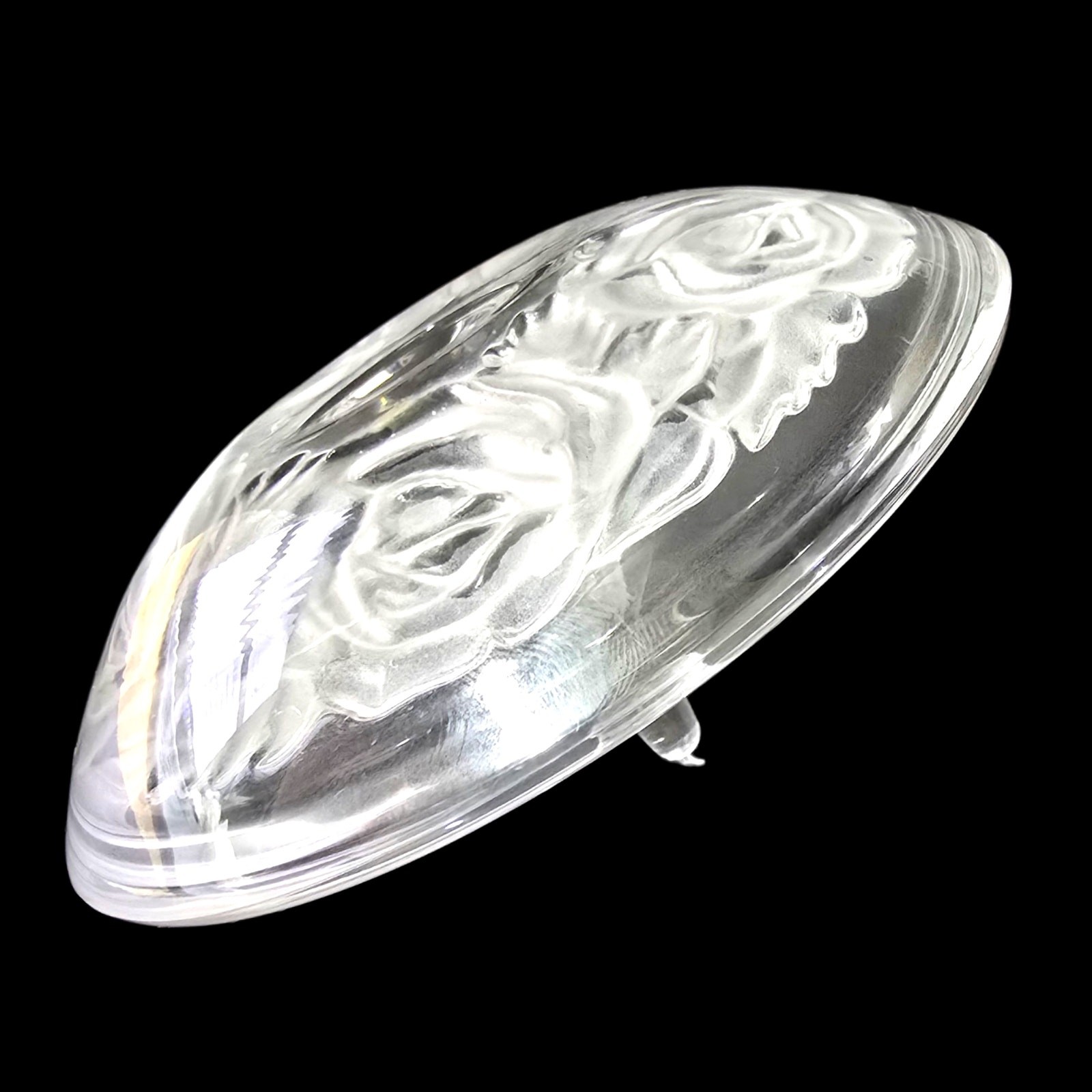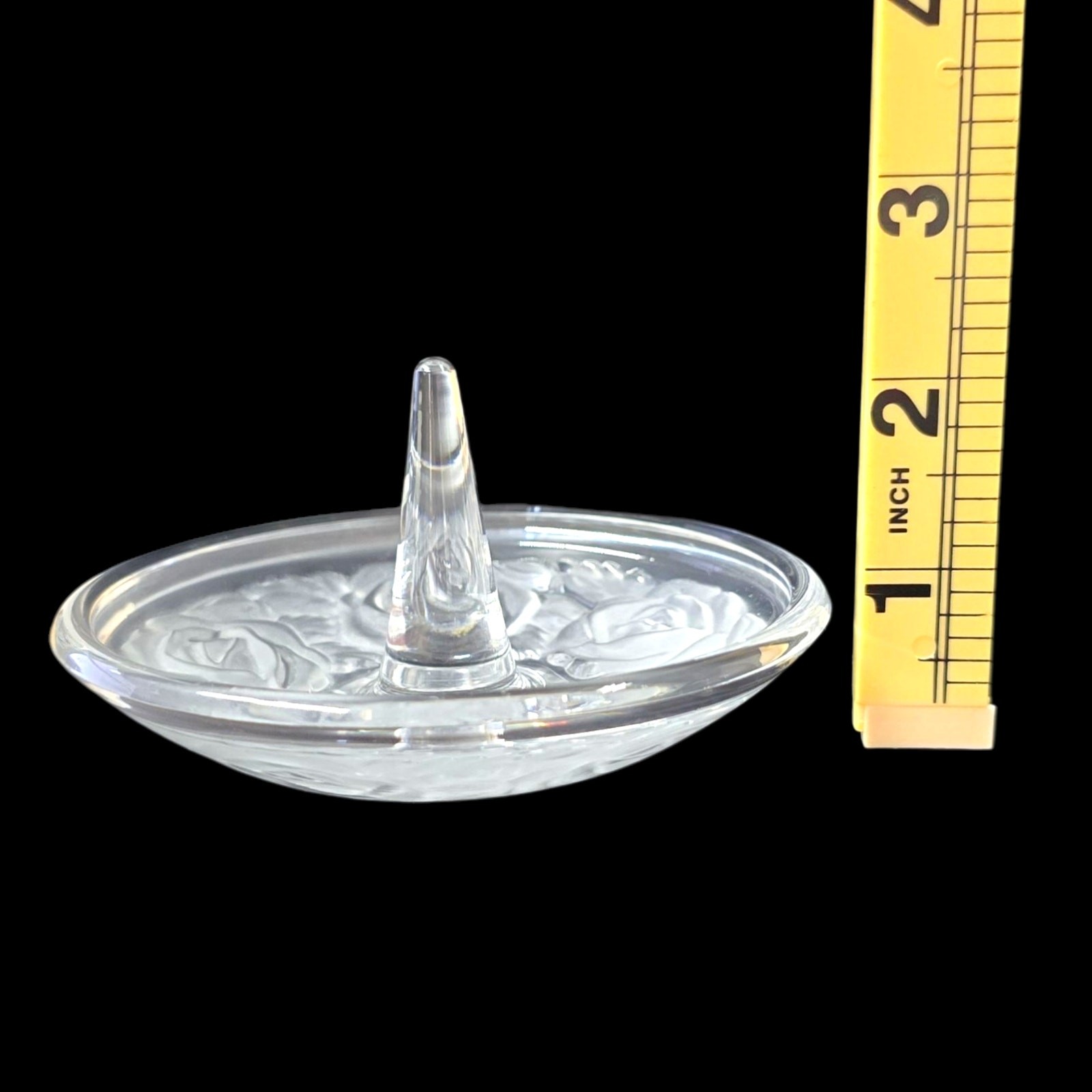 как выглядит Vintage Clear Glass Ring Holder Dish with Frosted Rose Design Jewelry Tray фото