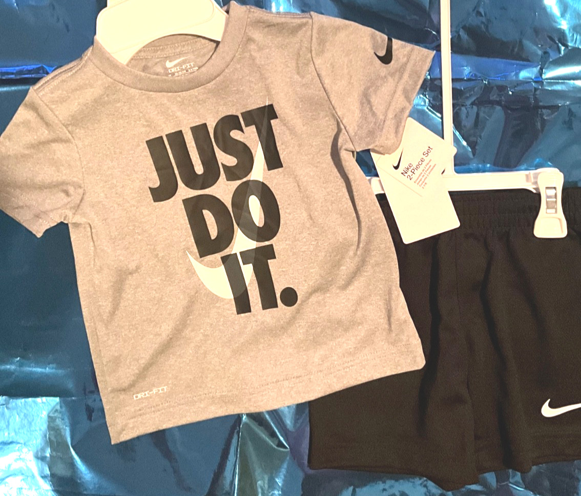 New Boy's Gray Black Nike Just Do It 2 pc shorts set Size 6