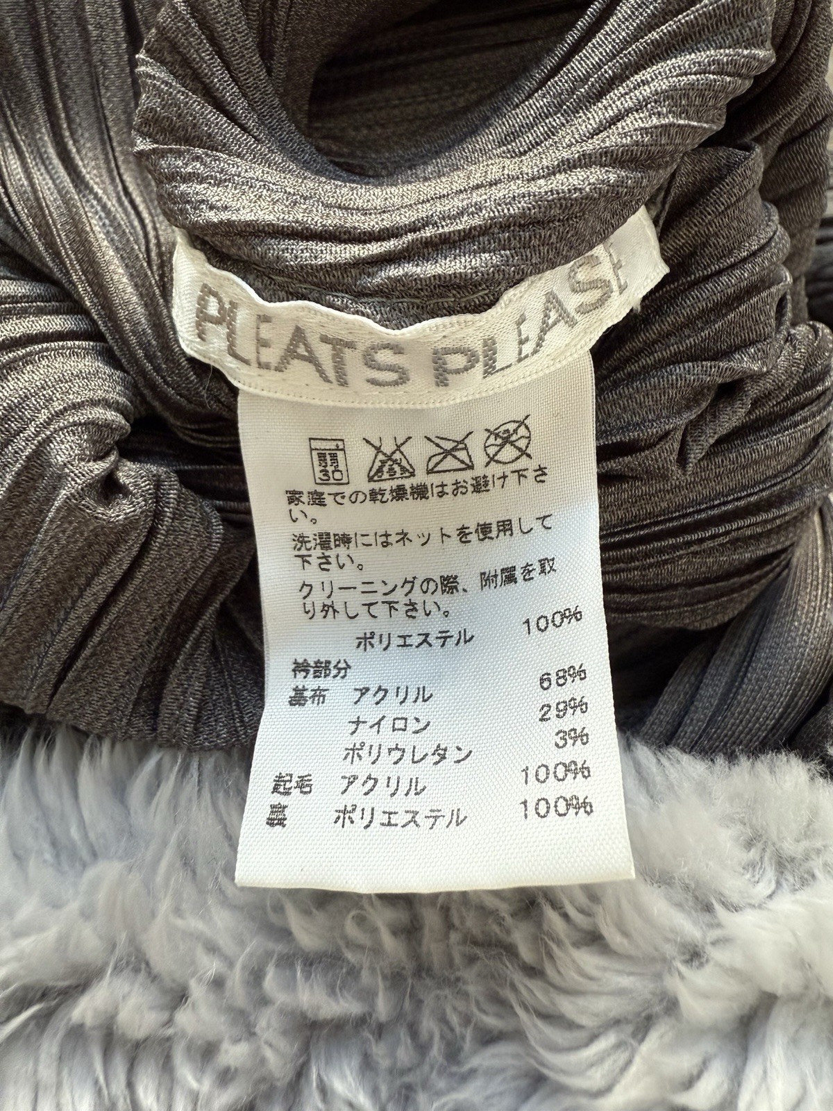 как выглядит RARE Pleats Please Issey Miyake grey fur trim belted jacket Size 3 фото