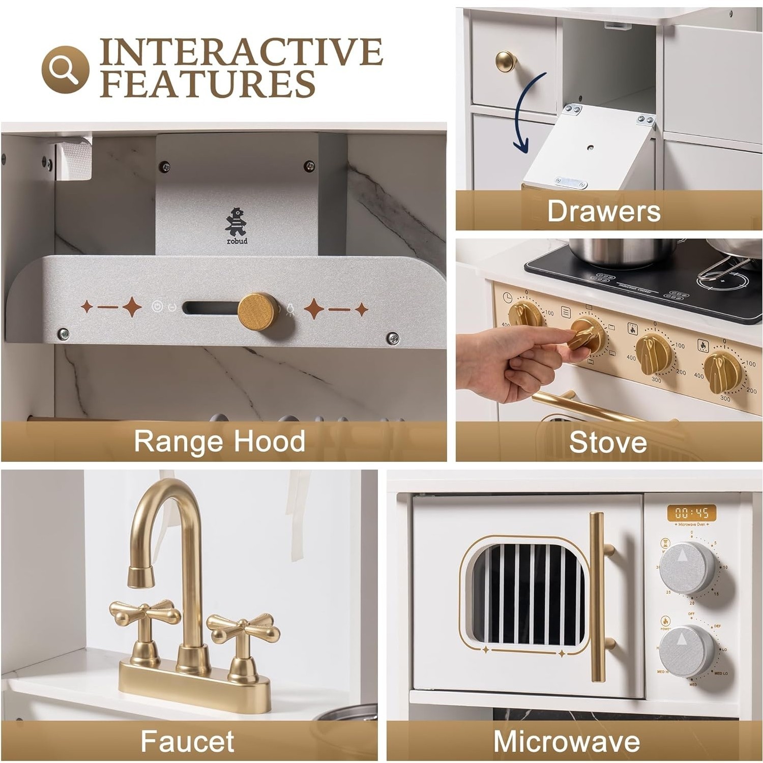 как выглядит ROBUD Play Kitchen Wooden Kids Kitchen Playset Toy Kitchen Gift for Boys Girls фото