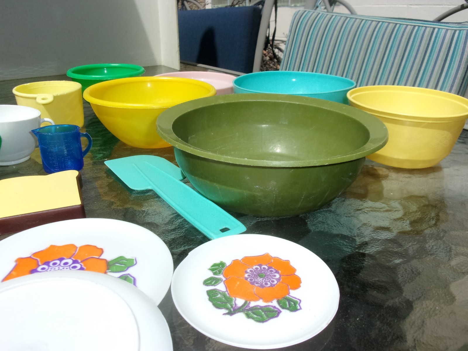 Lot of Vtg. Children's Plastic Kitchen Set: Cups, Saucers, Bowls