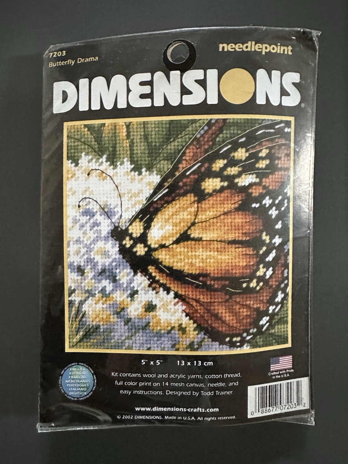 Dimensions Needlepoint Kit Butterfly Drama 7203 5 x 5 New Sealed