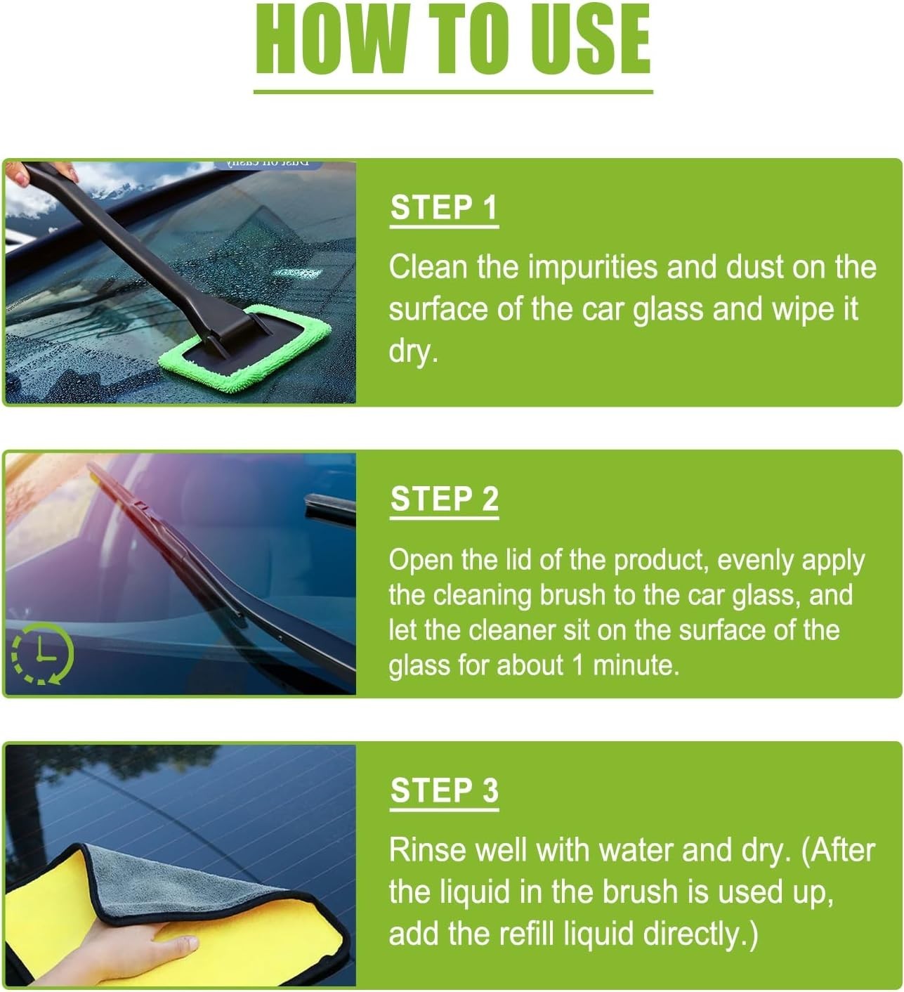 Особенности: Reusable, Effortless Cleaning Tool, Integrated Liquid, Seamless Integration of Liquid Brushes, Safe for Car Paintwork, Streak-free Results, Restores Glass Clarity, Nano-grinding Technology, Surfactants, Environmentally Friendly