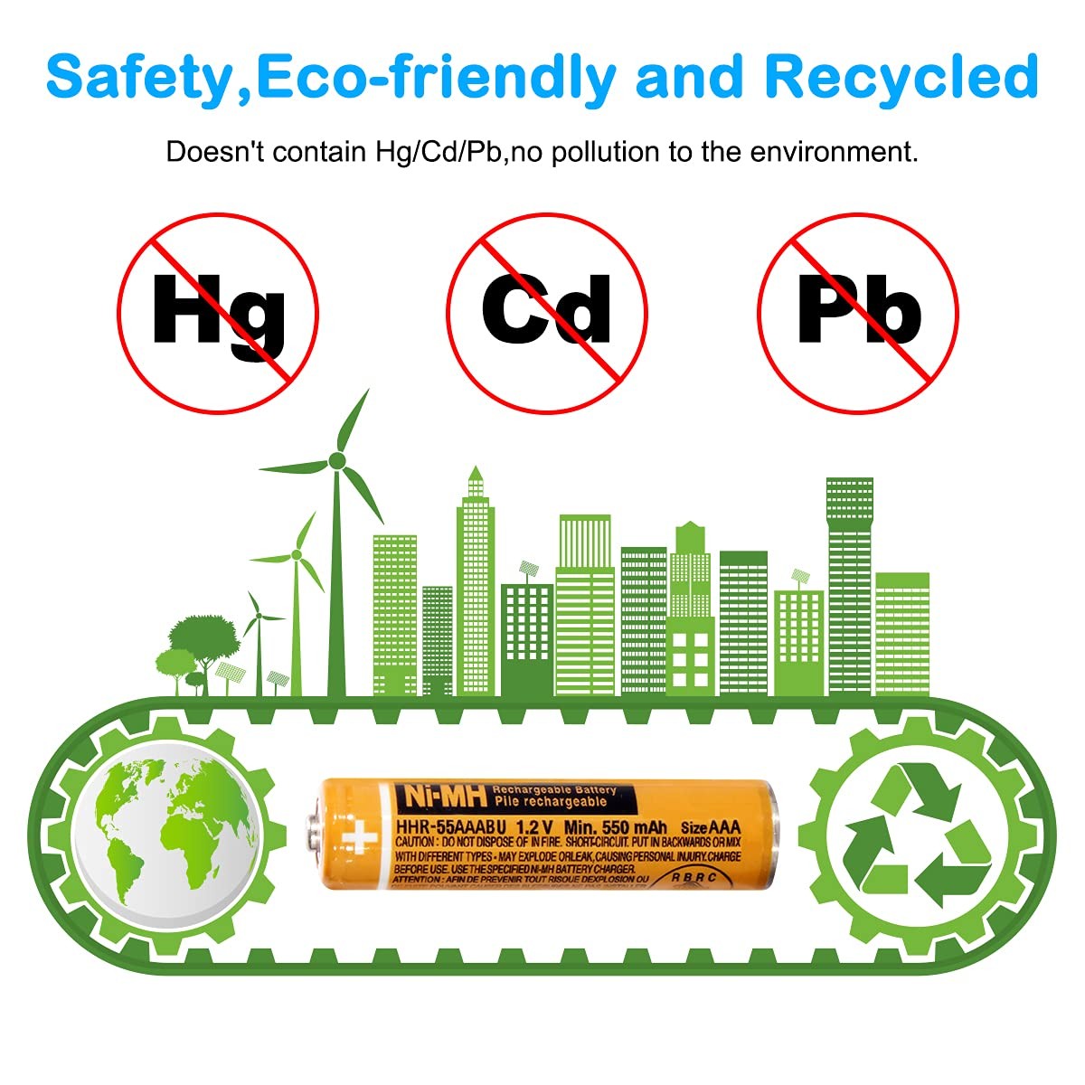 NI-MH AAA Rechargeable Battery 1.2V 550mah 4-Pack hhr-55aaabu AAA Batteries f...