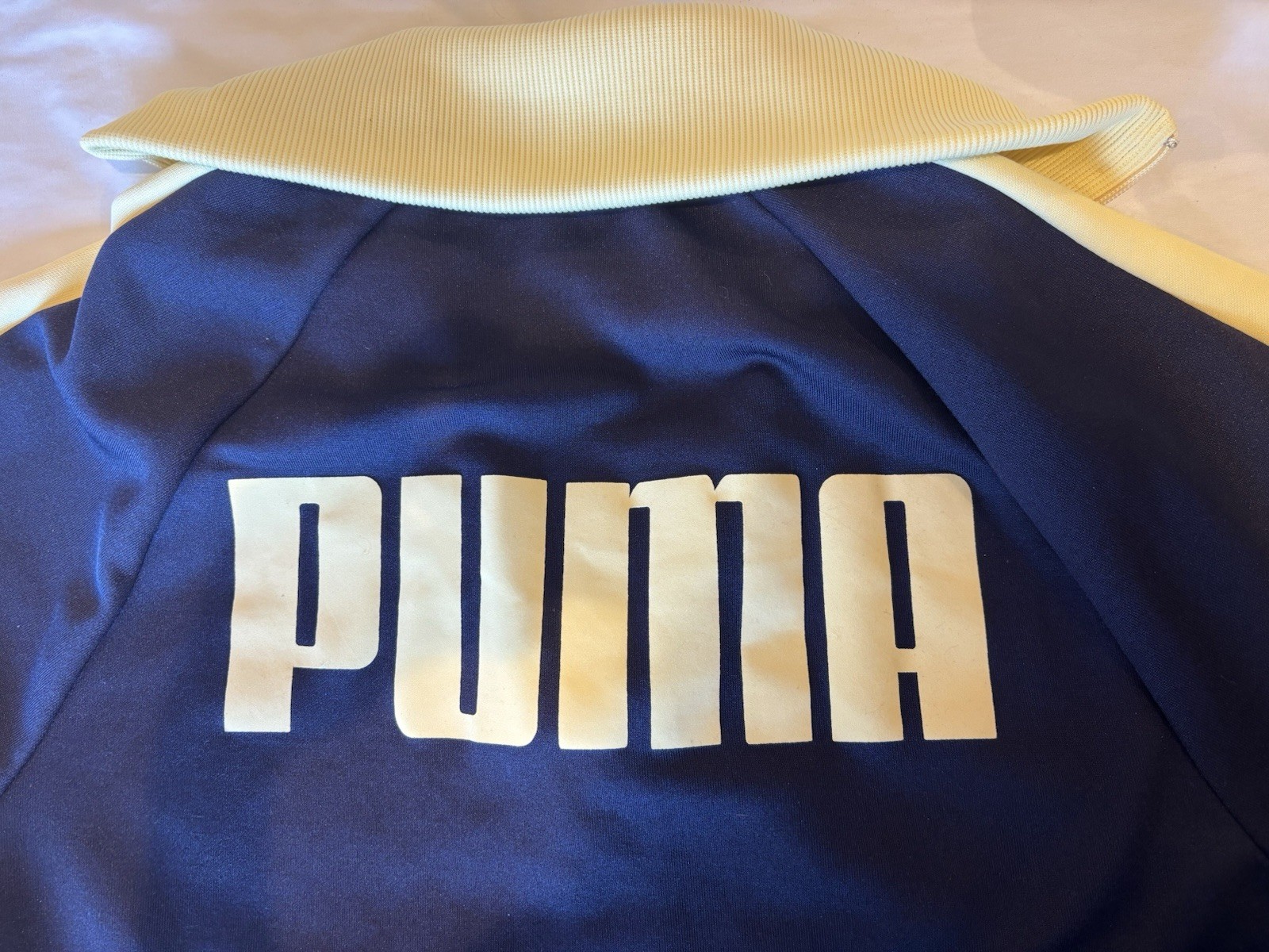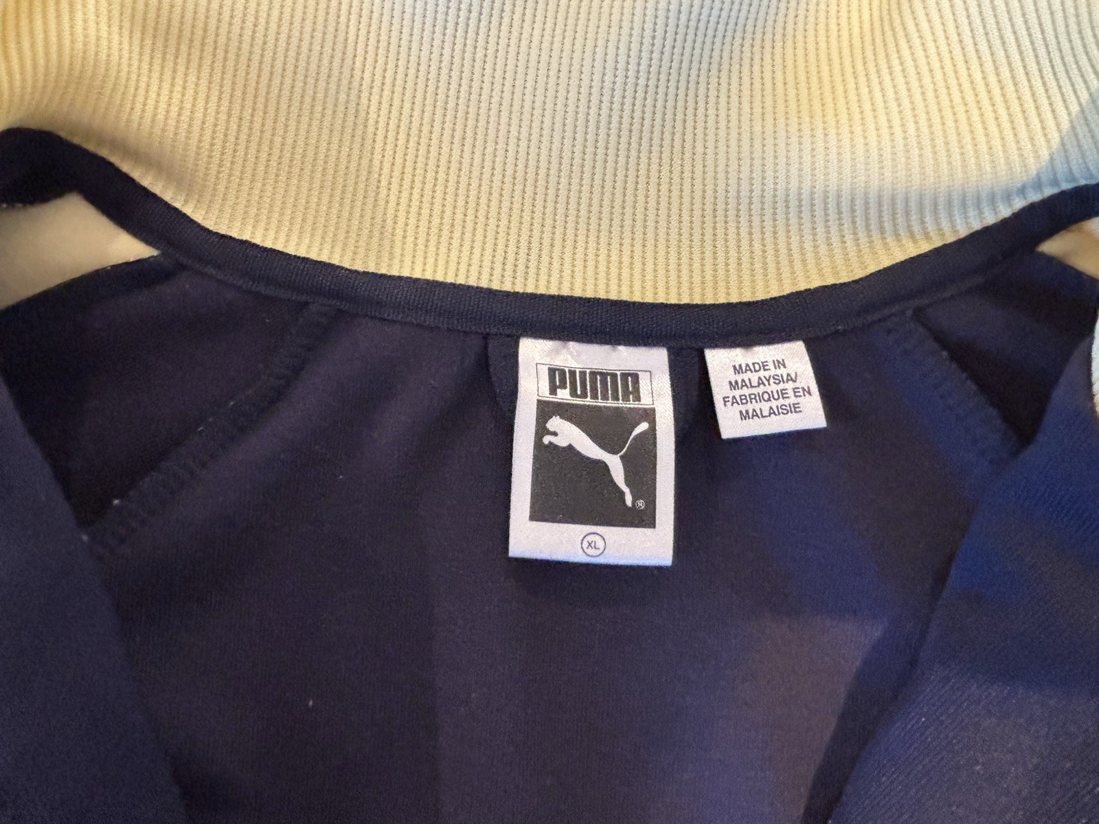 Vintage 70s Puma Track Jacket Full Zip Warmup Cream Navy Blue XL Retro Sporty
