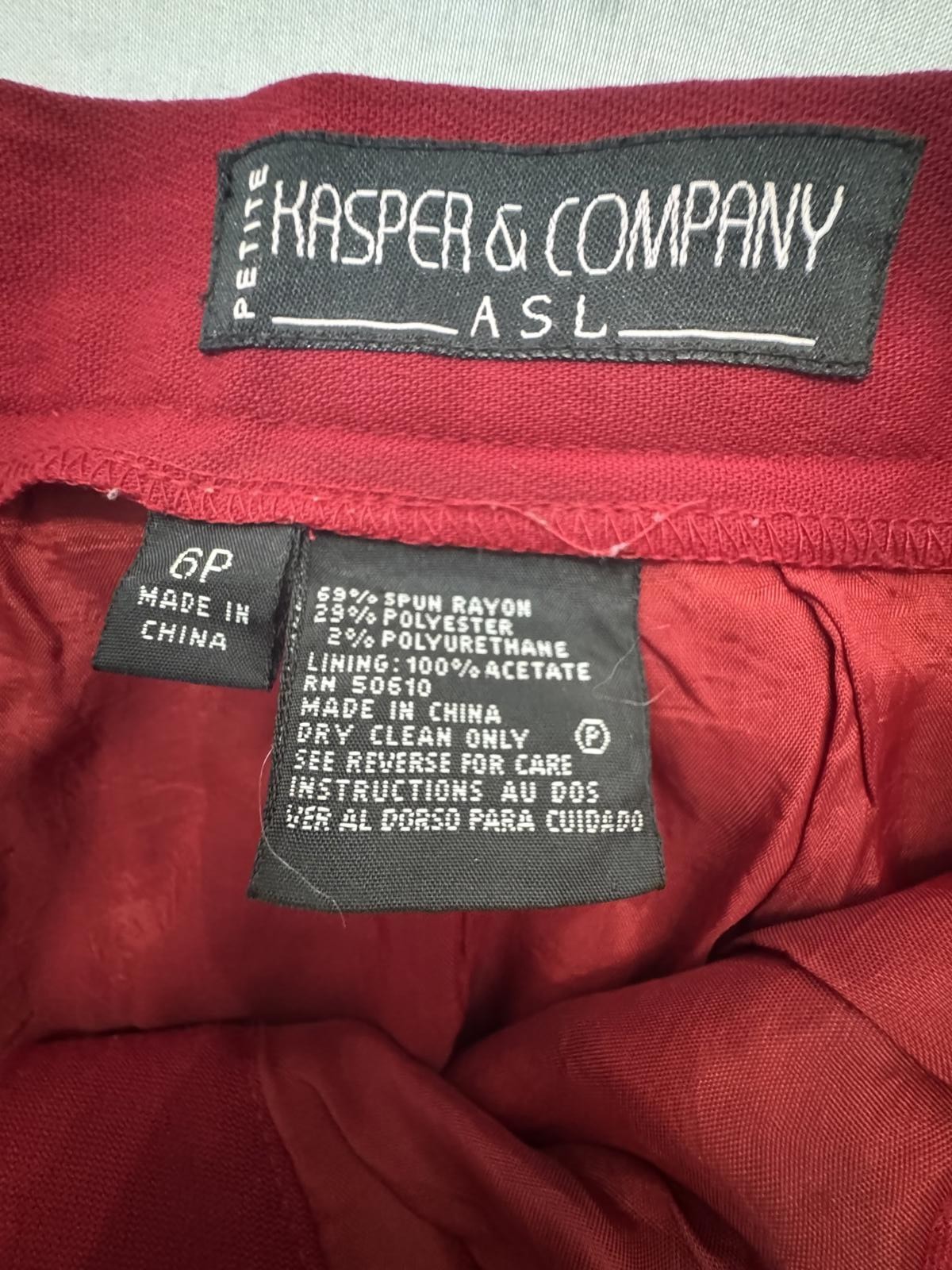Kasper Company ASL Women's Red Pants Size 6P
