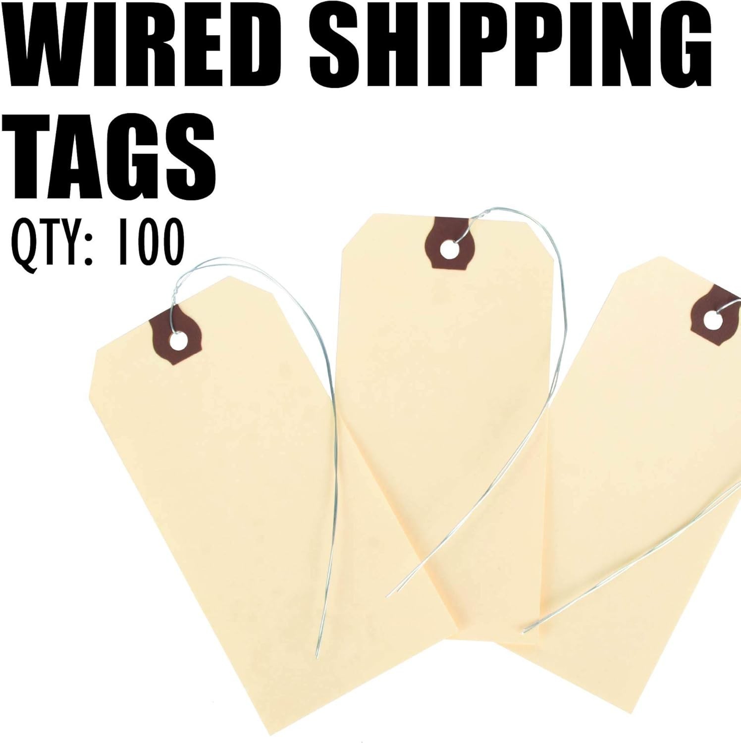 Blank Shipping Tags with Wire,100 Tags 4 3/4 X 2 3/8, Manila Card Stock wit...