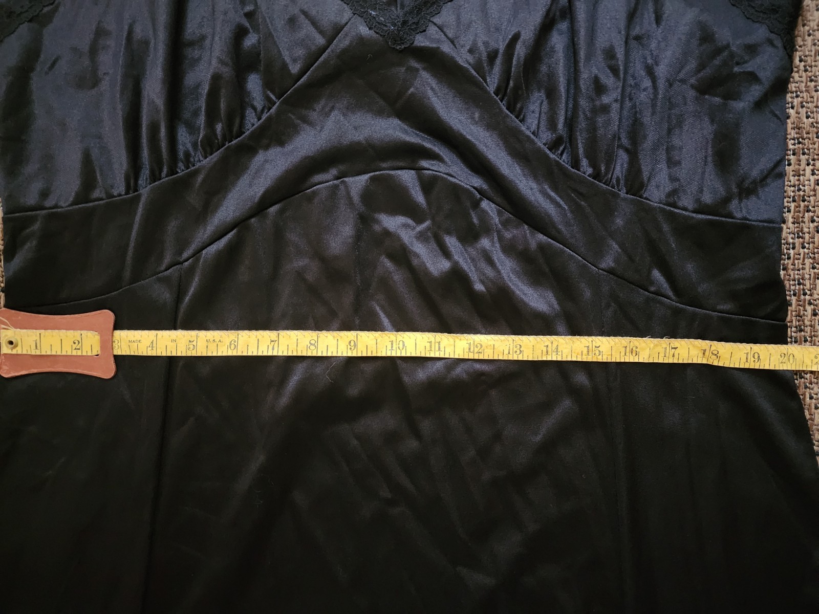 как выглядит VINTAGE 1960s Black VELROSE SILKY NYLON LINGERIE FULL SLIP SZ 44 Read фото