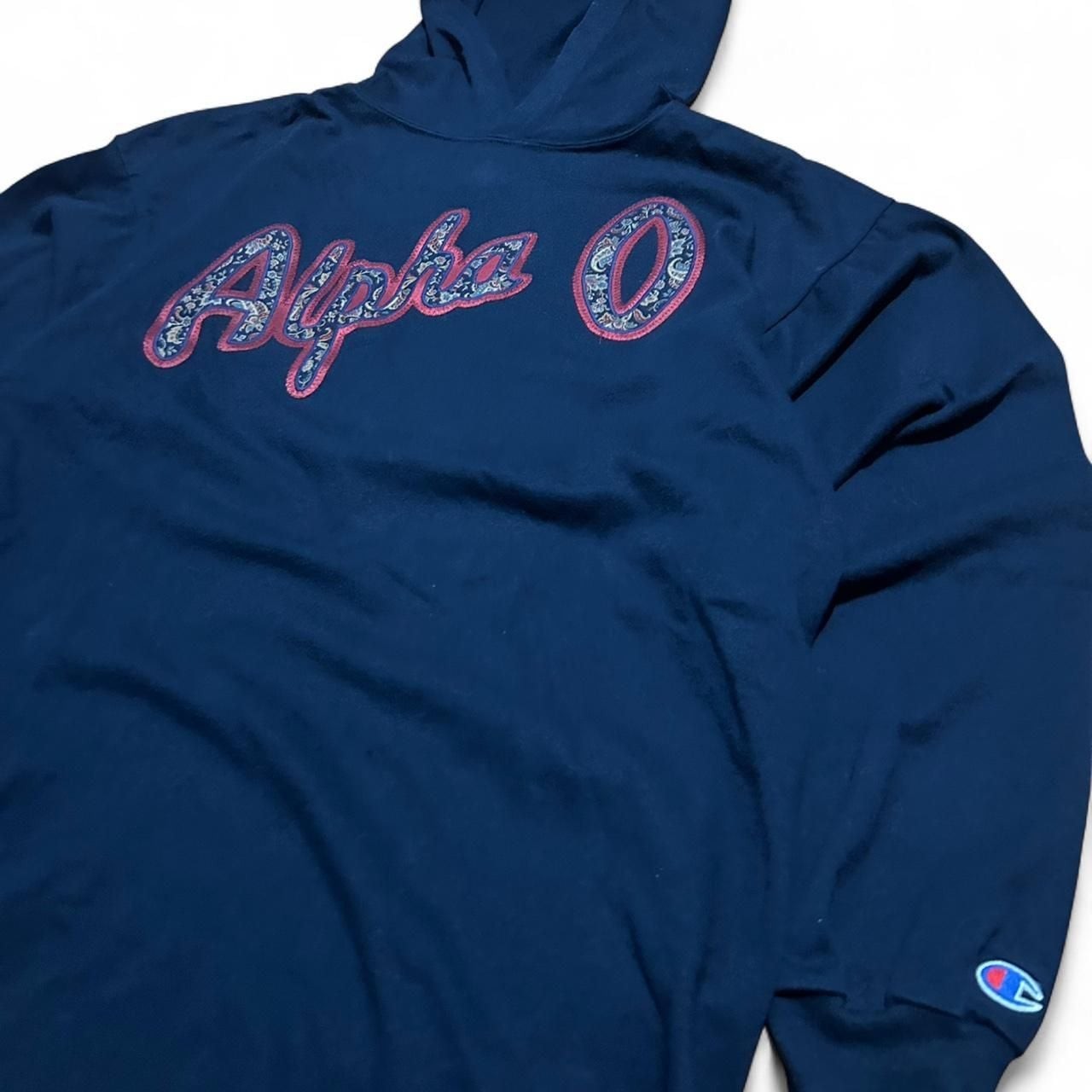 как выглядит Vintage 80s/90s Champion Navy ".Alpha O." Embroidered Hoodie - Made in USA фото