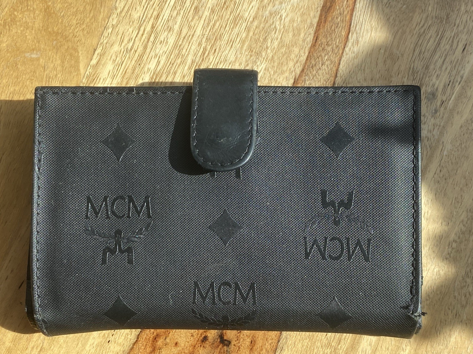 как выглядит Vtg MCM Visetos Nylon Black Wallet W Change Purse фото