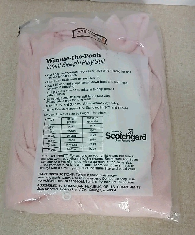 VTG NEW Disney Winnie The Pooh Terrycloth Sleeper 24 Months Footed Embroidered