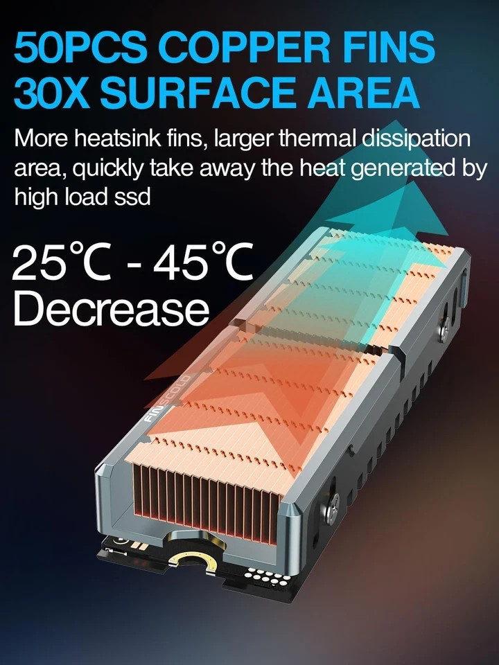 Copper M.2 HeatSink, Passive Nvme SSD Heatsinks with Copper Fins - Finscold Q80