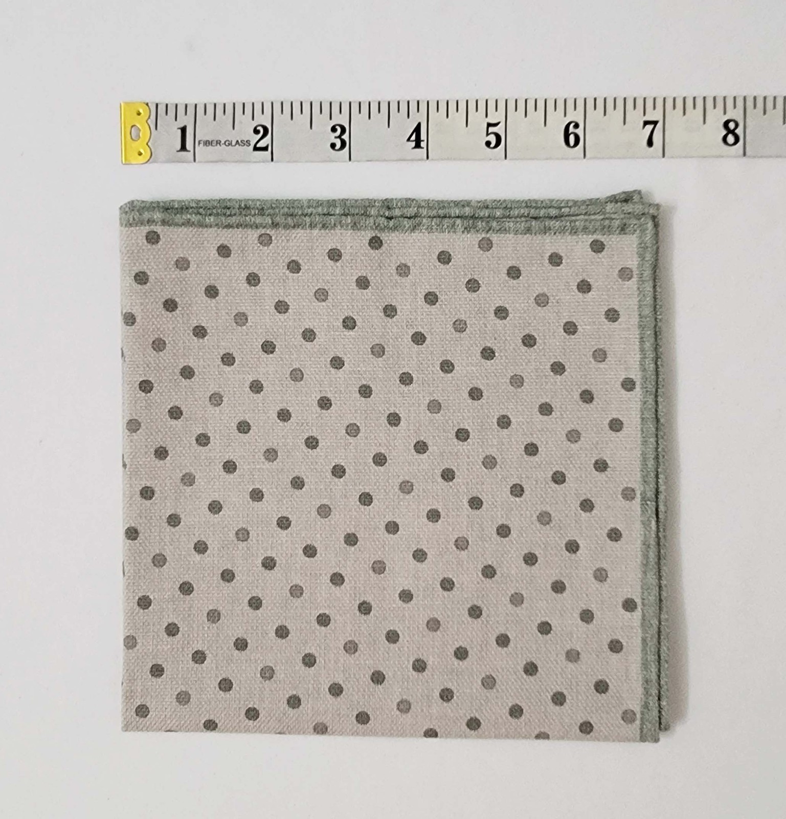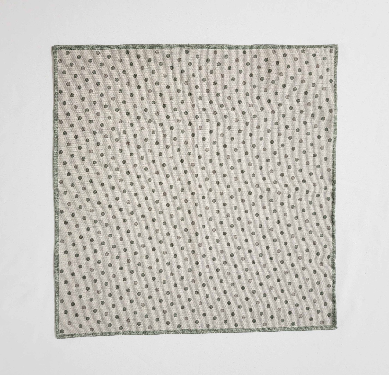 Brunello Cucinelli Cotton Pocket Square - Beige with Green Dots and Edges